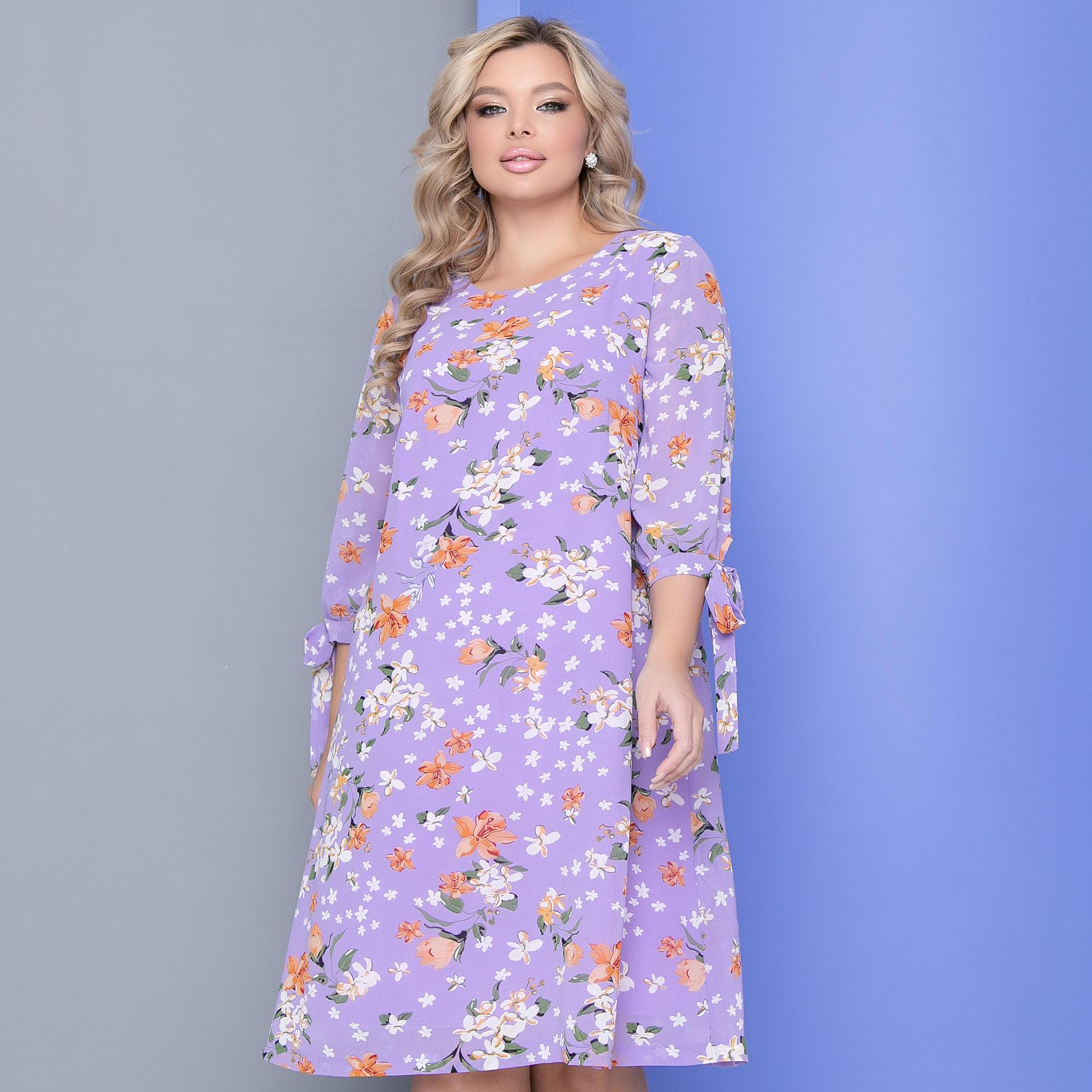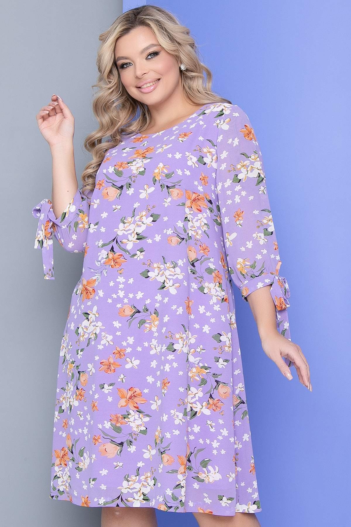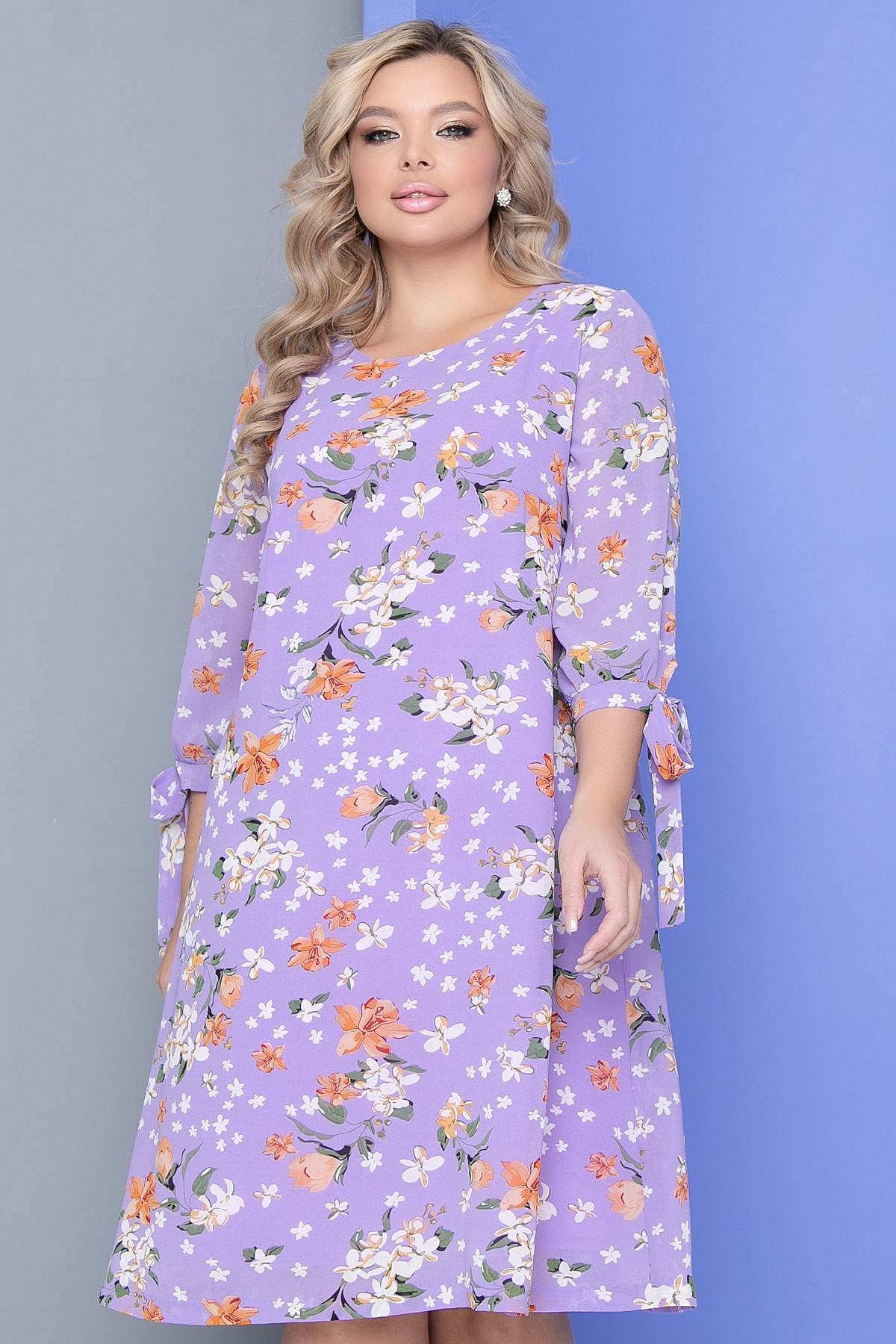 сиреневый Платье силуэта “трапеция“ из шифона на подкладе с рукавом 3/4.