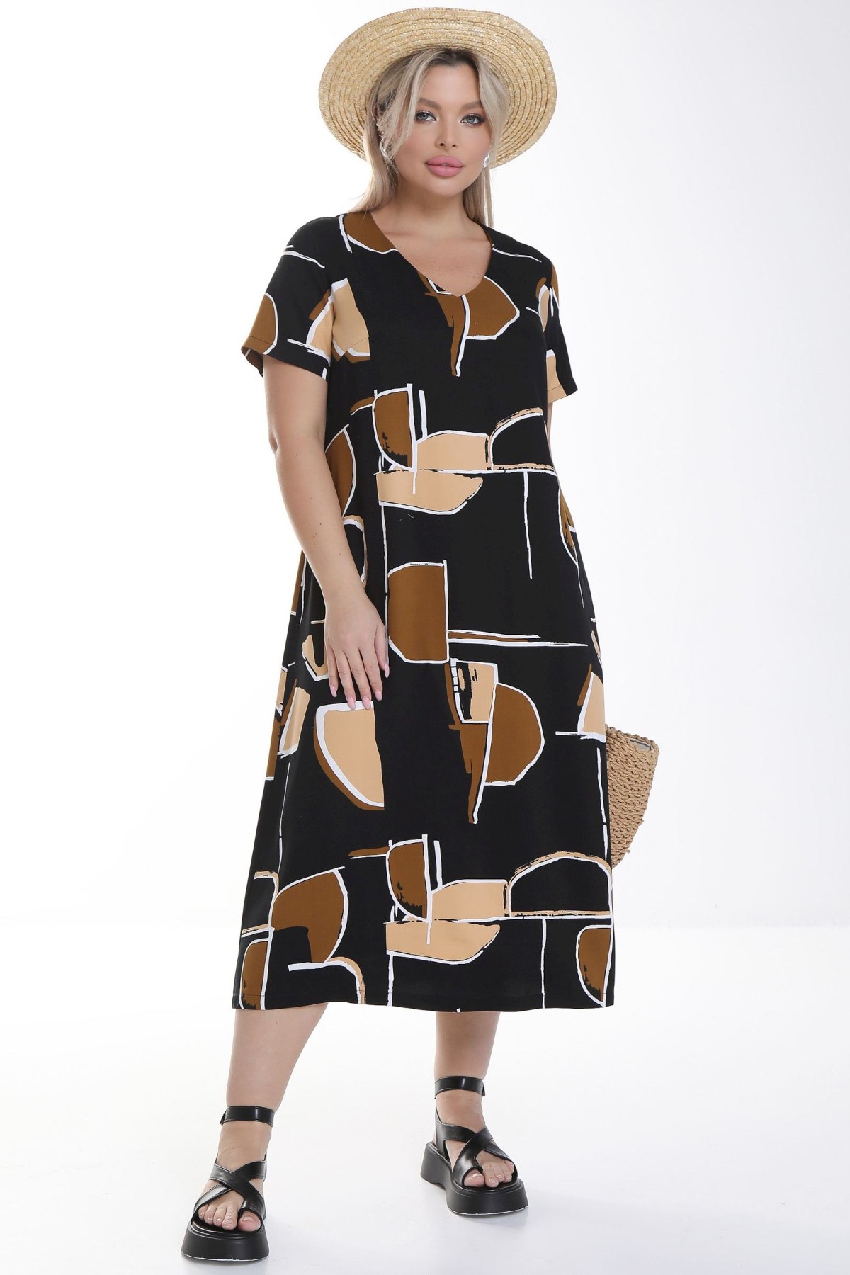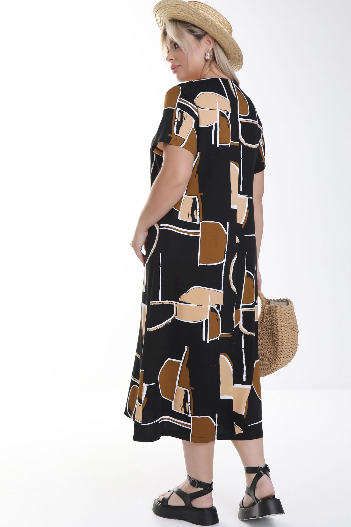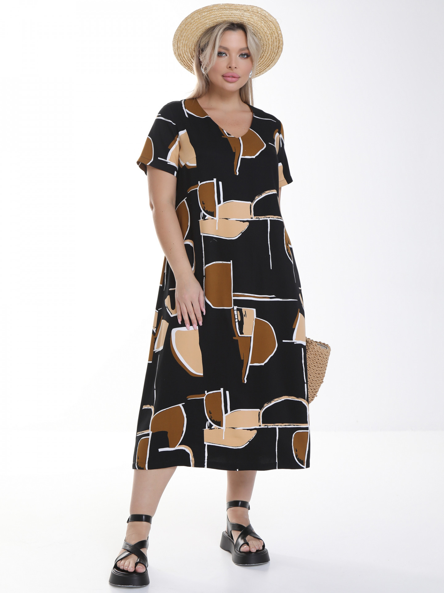 черный Женственное платье А - силуэта из вискозы-твил с абстрактным принтом.
