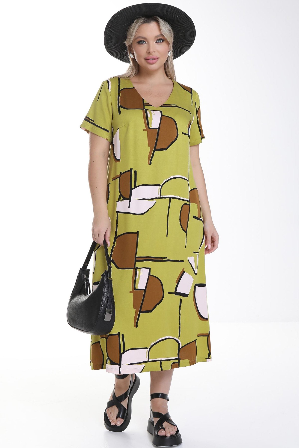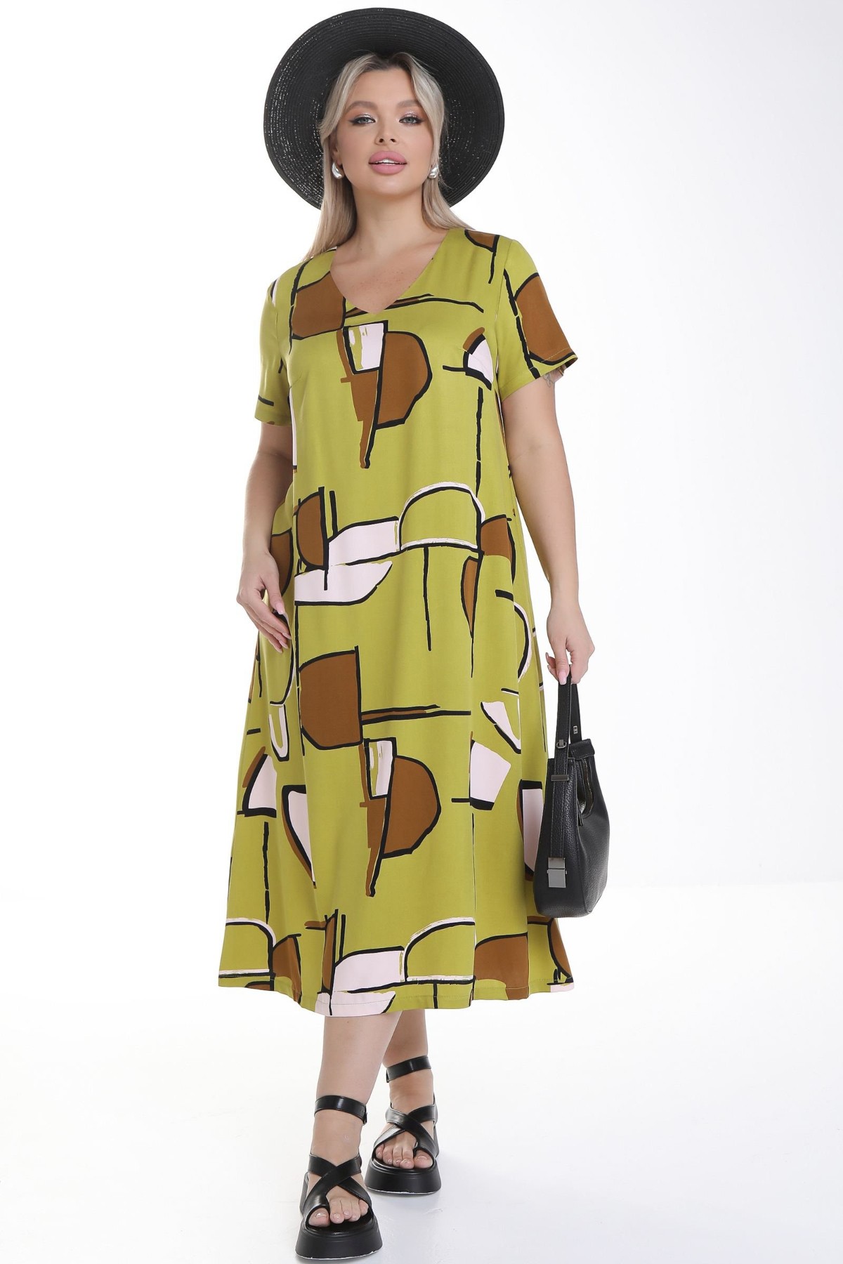 оливковый Женственное платье А - силуэта из вискозы-твил с абстрактным принтом.