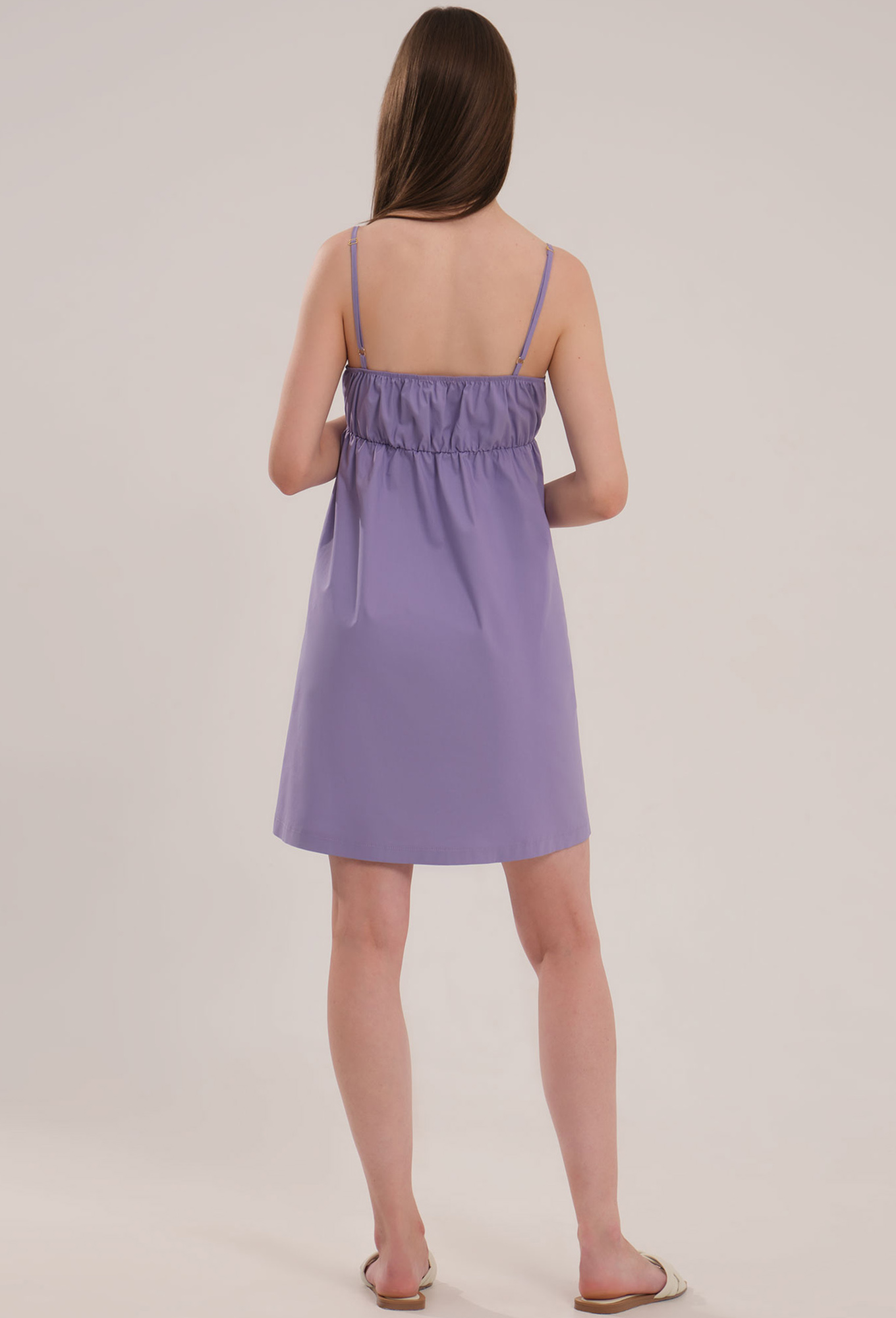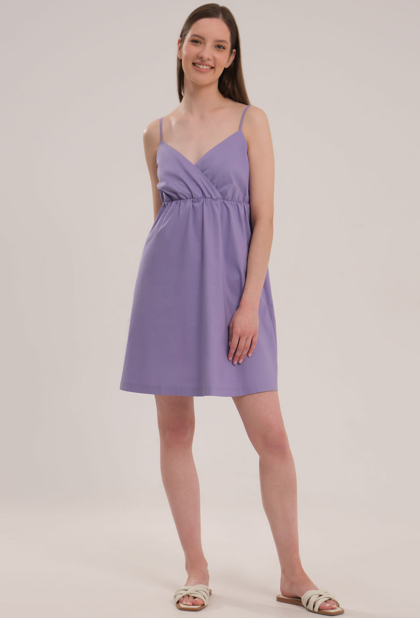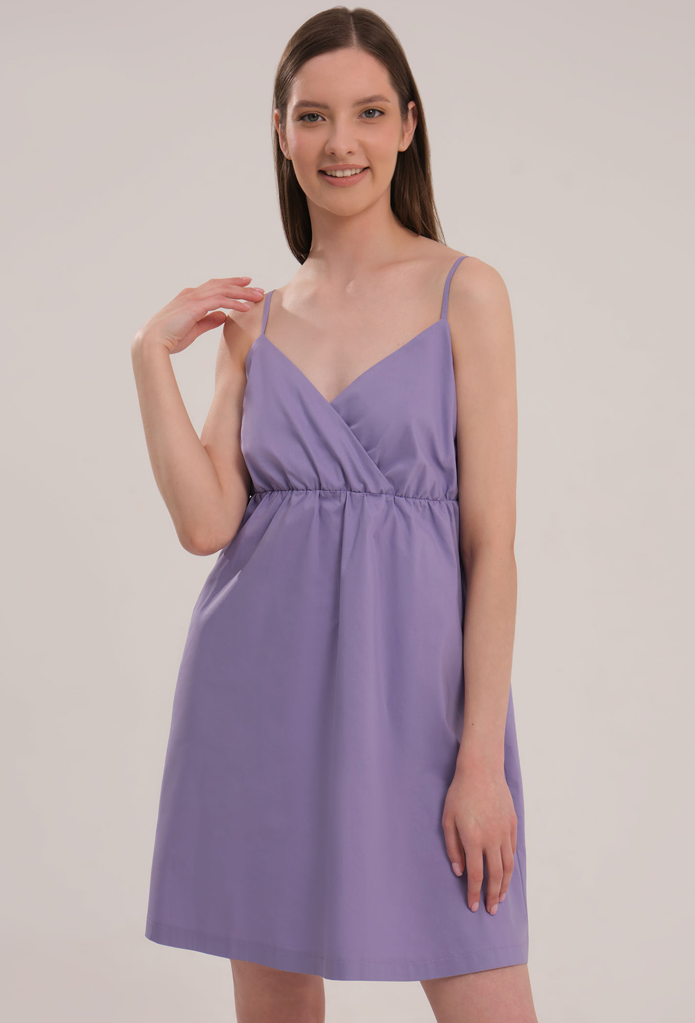 Модель: Панда 104080 сиреневый Ро..показатьст: 164 см (девушка на фото ростом 170 см) Сезон: Весна-Лето Тип ткани: Хлопок 76%, полиэстер 22%, эластан 2%Женское хлопковое платье на тонких бретелях, имеет длину мини.