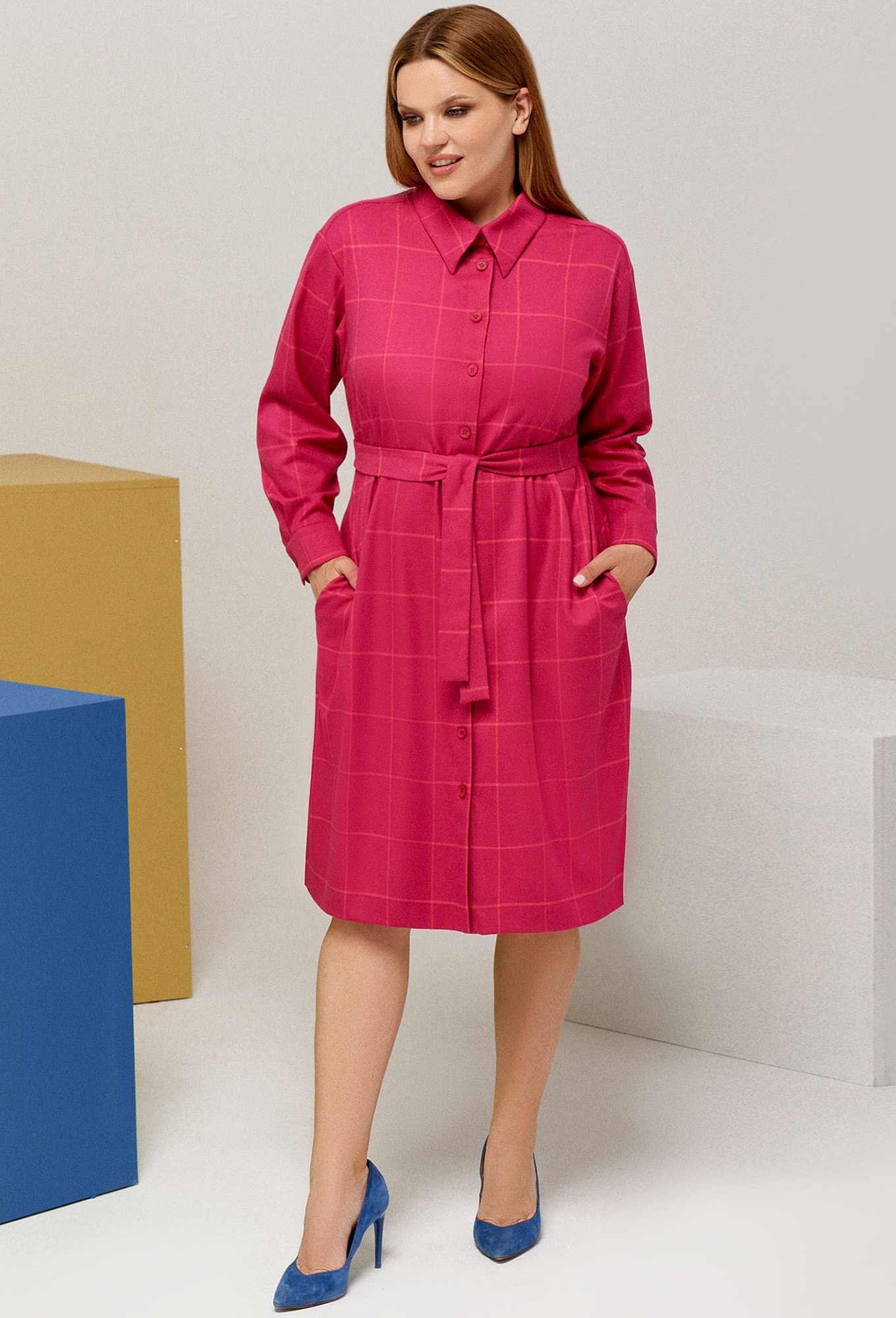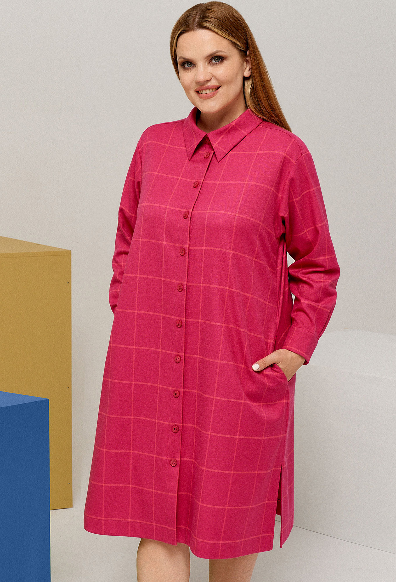 Модель: Панда 120380 розовый Рост..показать: 164 см (девушка на фото ростом 170 см) Сезон: Круглогодичный Тип ткани: Полиэстер 63%, вискоза 34%, эластан 3%Стильное платье-рубашка из плательной вискозной ткани с рисунком в клетку. Платье длиной миди, с центральной застежкой на пуговицы, со съёмным поясом, который подчеркнет вашу талию. Рукава длинные на притачной манжете. По бокам карманы.