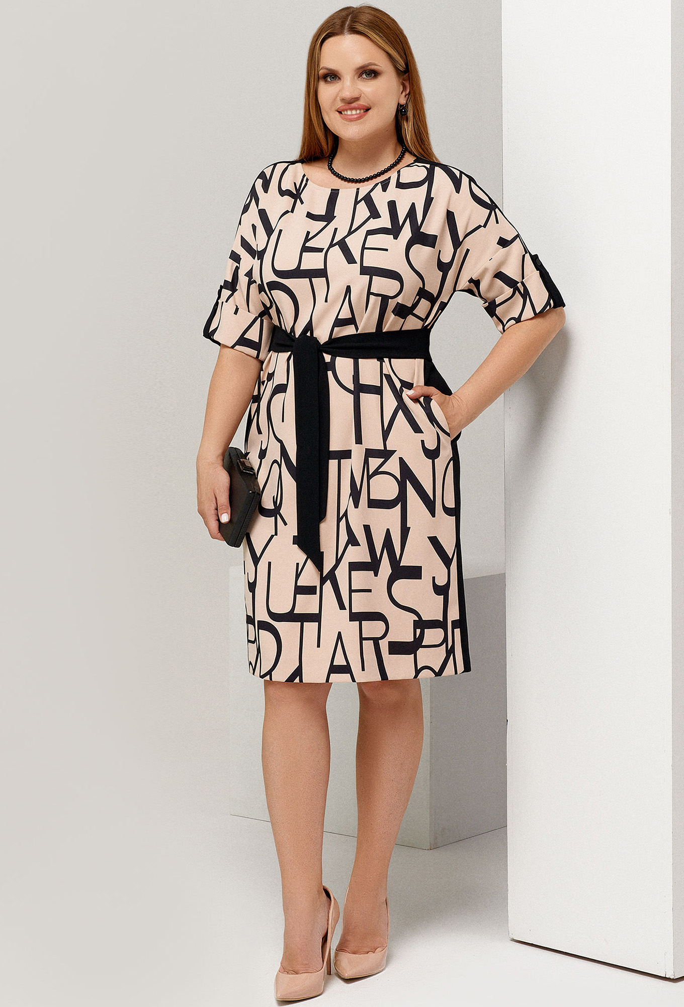 Модель: Панда 128080 черный Рост:..показать 164 см (девушка на фото ростом 170 см) Сезон: Весна-Лето Тип ткани: Полиэстер 65%, вискоза 32%, эластан 3%.Платье летнее женское. Длина платья до середины колена. Рукав 3/4, с отложной манжетой и декоративной патой. Пояс съёмный. В боковых швах карманы. Фасон платья превосходно садится по фигуре, визуально стройнит и дарит образу женственность. Сдержанная расцветка в светлых тонах и ненавязчивая черная вставка подойдут для любого повода. Оригинальность данной модели заключается в использовании принтованного полотна для пошива передней части и однотонного – для спинки. Такой эффект позволяет сделать силуэт более изящным. Свободный фасон не обтягивает фигуру, пояс из основной ткани подчеркивает талию, визуально стройнит силуэт.
