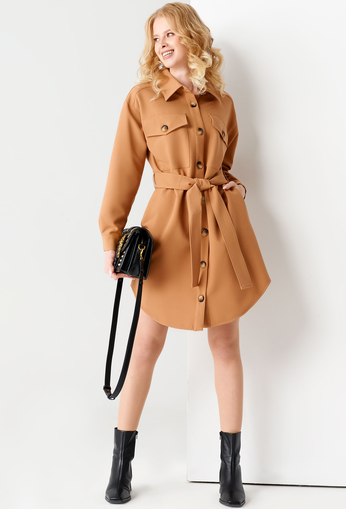 Модель: Панда 55680 бежевый Рост:..показать 164 см (девушка на фото ростом 170 см) Сезон: Осень-Зима Тип ткани: Полиэстер 70%, вискоза 25%, эластан 5%Модное женское платье в стиле блейзера - удобный наряд для повседневной носки. Платье-рубашка женское изменит ваш внешний вид за секунды. Застегните пуговицы, чтобы добавить образу строгости, или откройте декольте, чтобы придать наряду непринужденный вид. Короткое платье изготовлено из костюмной ткани. Мягкий материал хорошо пропускает воздух, не электризуется. Платье на пуговицах женское в комплекте со съемным поясом, изготовленным из основной ткани. Он акцентирует внимание на талии в фасоне свободного кроя. Платье с длинным рукавом украшает воротник рубашечного типа, карманы в боковом шве, накладные карманы с клапаном на пуговице.