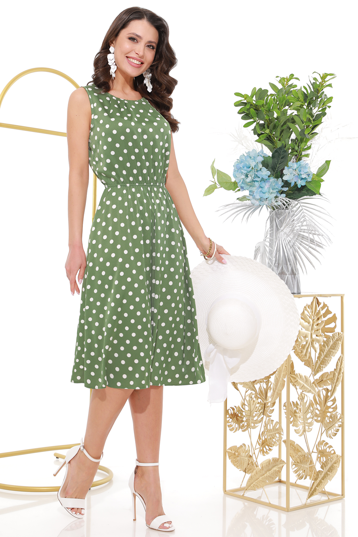Элегантное летнее платье станет отличным дополнением к вашему летнему гардеробу. Благодаря полуприлегающему силуэту и округлому вырезу горловины, оно подчеркнёт вашу женственность и придаст образу изысканности. Изготовлено из качественного полиэстера, который обеспечивает комфорт и долговечность изделия. Материал не мнётся, что делает платье практичным и удобным в носке. Это платье идеально подойдёт для создания стильных летних образов. Оно прекрасно сочетается с различными аксессуарами и обувью, позволяя экспериментировать с разными стилями.