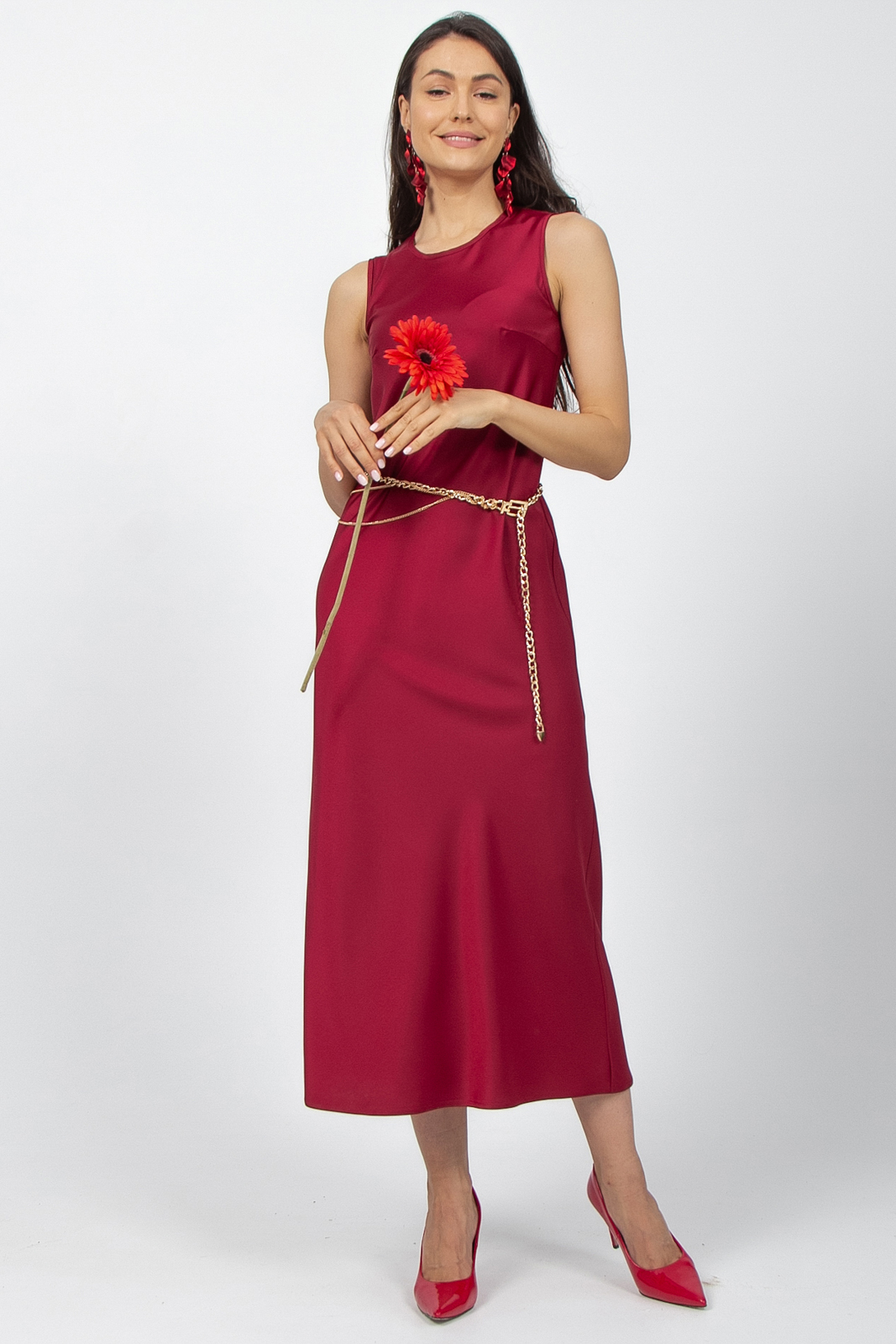 Шикарное однотонное платье  поможет воплотить строгие луки в популярном бельевом стиле для деловой встречи и офисной работы в демисезонный (весенний и осенний) период.