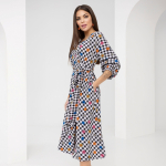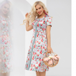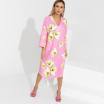 Райская птичка из мира Барби. Простой крой, идеально подходящий любой фигуре. Цветовая гамма из мечты любой девчонки. Стильный принт и акцентные полоски на рукавах и горловине. Рекомендуем использовать броскую бижутерию.