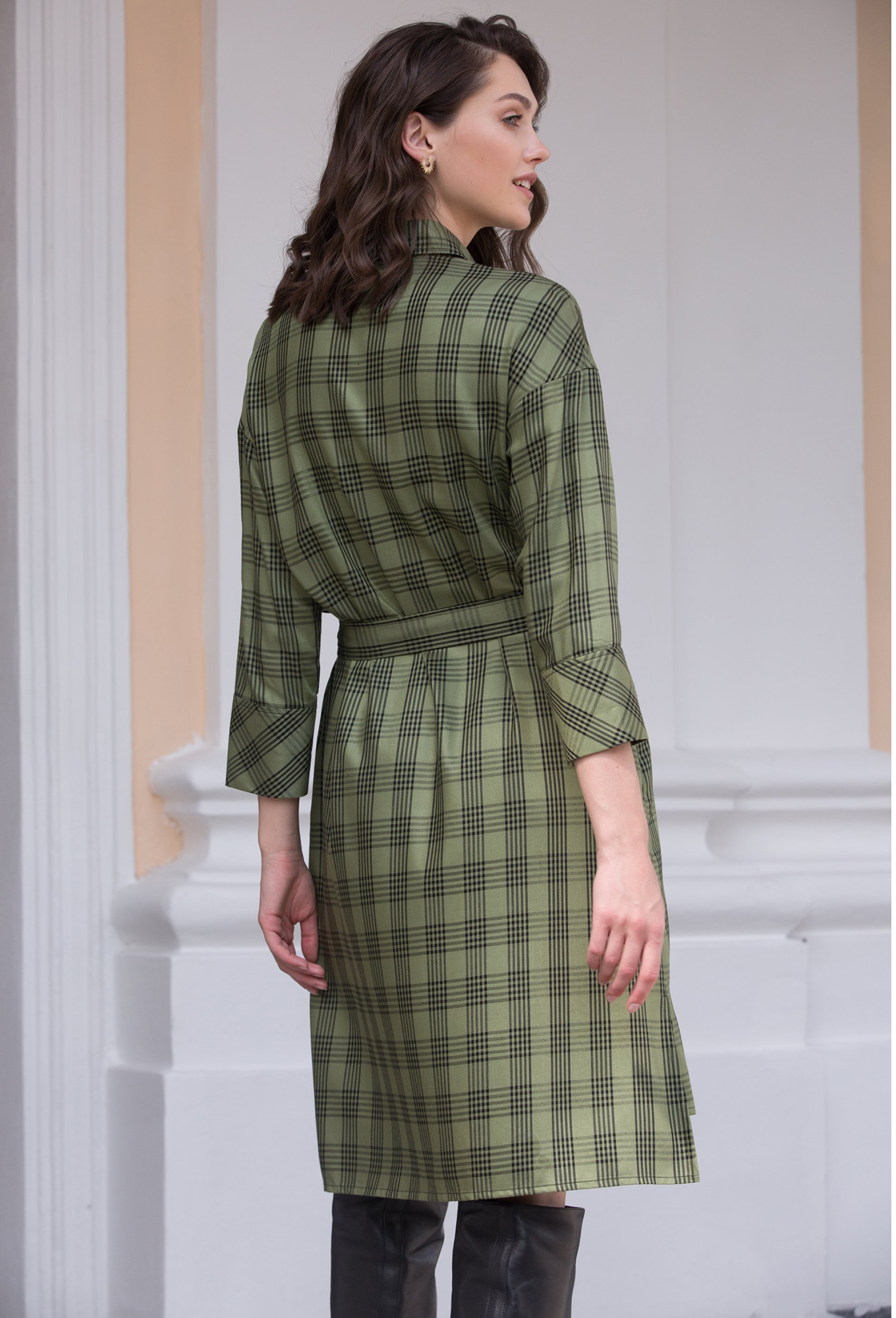 Модель: Престиж 4243 зеленый Рост..показать: 164 см (девушка на фото 170 см) Сезон: Круглогодичный Тип ткани: 100% вискозаПлатье-рубашка прямого силуэта длиной чуть выше колена. Слегка приспущенная линия плеча, короткие рукава с манжетой выше локтя. Воротник стояче-отложной. Застегивается платье на планку с пуговицами. Спереди на груди накладные карманы, по бокам карманы. Особенность модели придает разноуровневый низ, по бокам разрезы. Линию талии изящно подчеркивает съёмный пояс.