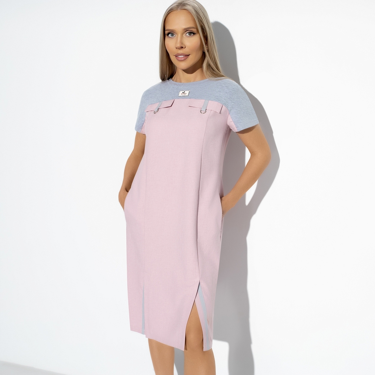 Выбирать не только моду, но и себя в моде — один из принципов CHARUTTI. Ориентироваться на свой вкус и комфорт легко с платьем CHARUTTI в милом сочетании цветов — серого и розового.