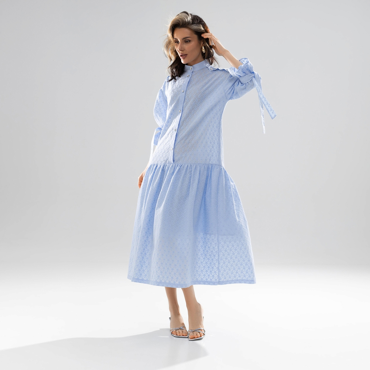 Платье из шитья высокого качества в нежном голубом оттенке представит вас, как девушку, познавшую смыл жизни. Платье CHARUTTI – воплощение женственности и утонченности в наивысшем проявлении.