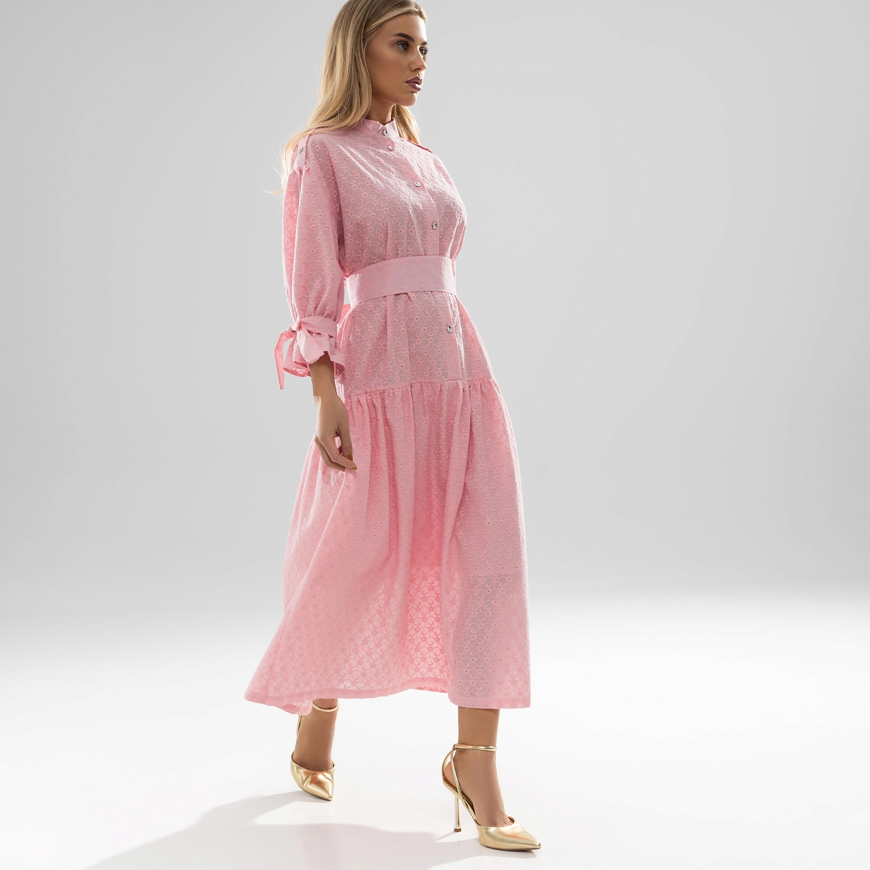 Платье изготовлено из ткани «шитьё» и «ниагара», в составе которой 90% хлопка, 9% полиэстера и 1% спандекса. Этот материал обеспечивает плотно прилегающую посадку, долговечность и комфорт. Хлопок делает платье мягким и приятным на ощупь, а полиэстер и спандекс добавляют эластичность, позволяя платью идеально садиться по фигуре. Вы будете чувствовать себя уверенно и комфортно в течение всего дня, наслаждаясь каждым моментом.