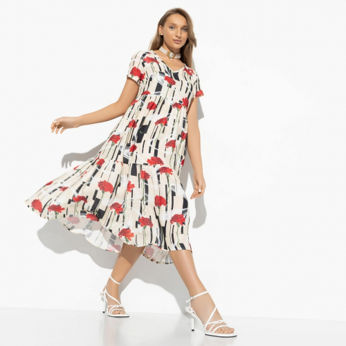 Платье «Прикосновение нежности» стало настоящим флагманом в мире моды благодаря своему восхитительному трикотажу «фукро». Эта ткань обволакивает тело, как вторая кожа, создавая ощущение нежности и комфорта. Невероятный принт, украшающий это платье, подчеркивает его романтичный стиль и делает каждый момент в нем особенным. Это платье идеально подходит для тех, кто хочет выразить свою индивидуальность и поделиться своей любовью к миру. Покупатели, готовые приобрести платье оптом, получают уникальную возможность наполнить свои витрины образами, которые покоряют с первого взгляда и заставляют сердца трепетать.