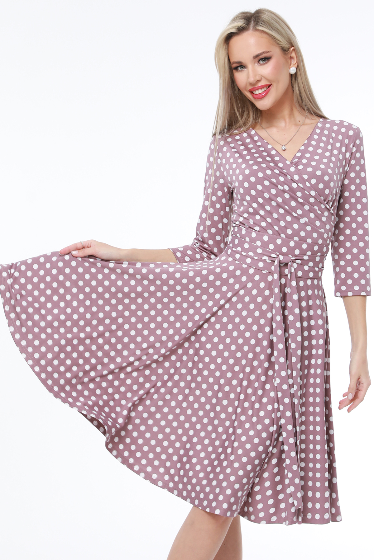 Это платье представляет собой стильный и универсальный выбор для демисезонного периода. Платье комфортное и легкое при носке. V-образный вырез горловины придает платью элегантный и женственный вид, добавляя изюминку в образ. 3/4 рукава делают это платье универсальным вариантом для различных случаев - от повседневных выходов до более официальных мероприятий. Модель платья - полуприлегающий силуэт, который подчеркивает фигуру, но при этом не сковывает движения, обеспечивая максимальный комфорт при носке. Бережная стирка при 30 градусах обеспечивает легкий уход за этим платьем, сохраняя его качество и цвет на долгое время.