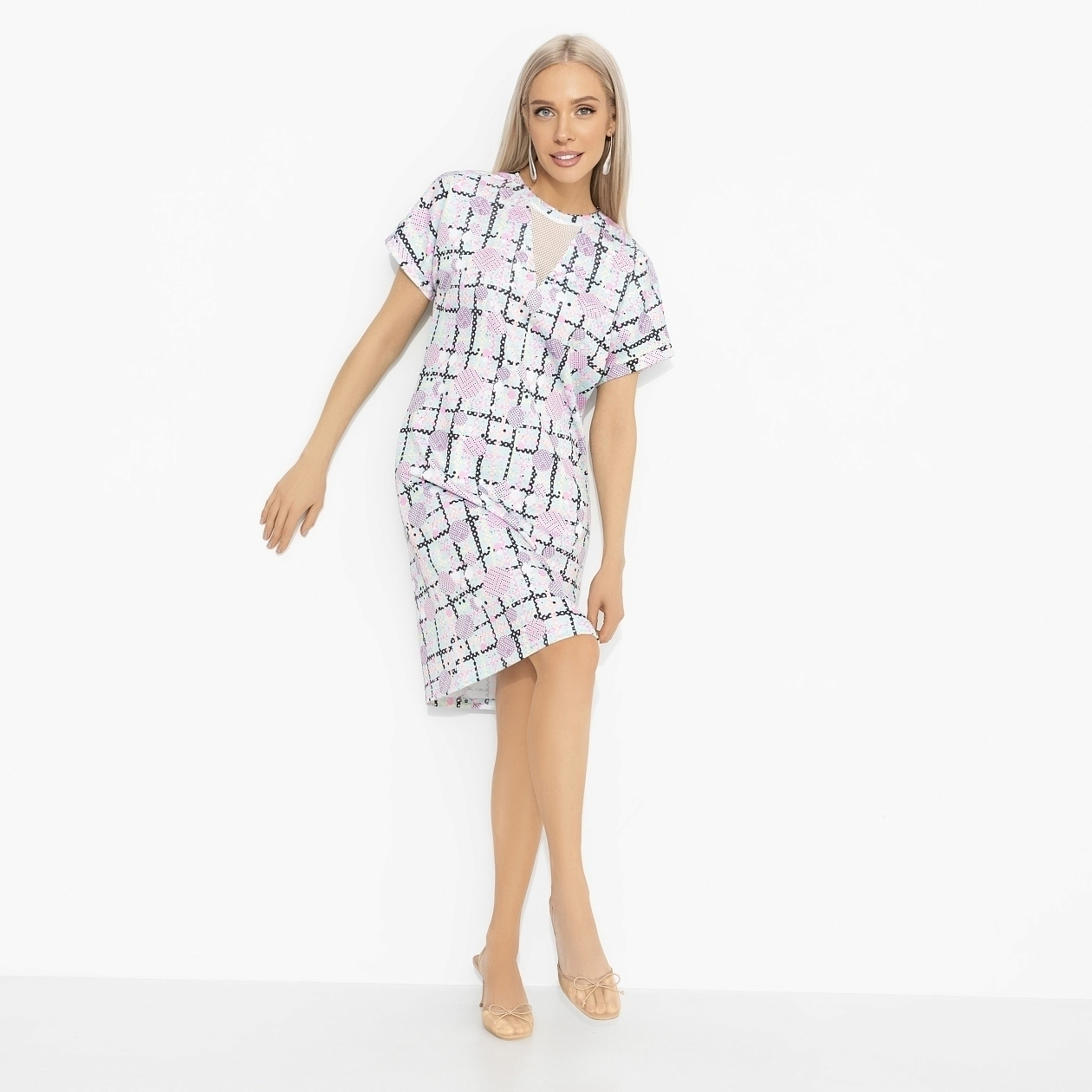 Бриджит Джонс доказала: быть немного спонтанной – это уже половина успеха. Платье ЧАРУТТИ как раз для таких моментов – когда решение принимается за секунду, а образ всё равно попадает точно в цель. Платье свободного силуэта из ткани «водолаз скуба». Короткий рукав, округлая горловина с контрастной отделкой, декоративная вставка из эластичной сетки. И даже неожиднные повороты у тебя получаются безупречно!