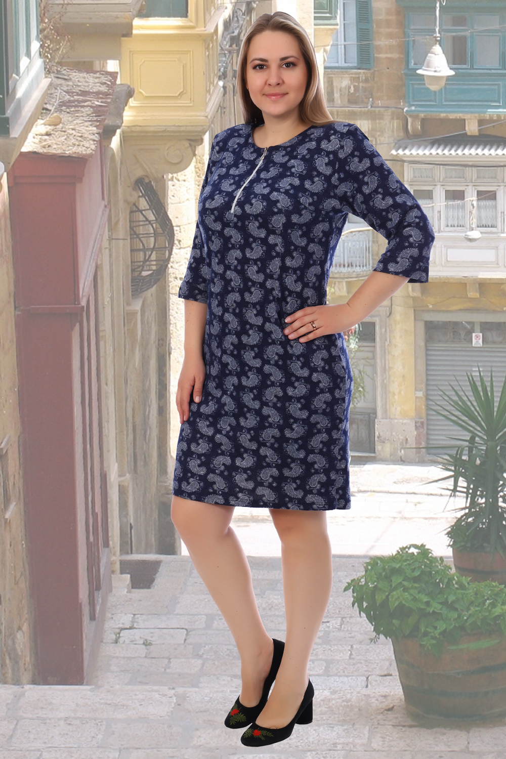 Платье женское полуприлегающего силуэта с застежкой-молнией спереди, 3/4 рукав на манжете. Идеальный вариант на каждый день Цвет: синий горох;серый горох; Материал: ангора;ангора; Состав: 100% полиэстер.
