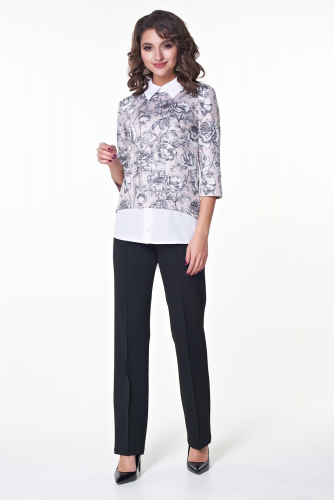 Легкое платье прямого силуэта. Округлая горловина на внутренней обтачке. Короткие цельнокроеные рукава, оканчиваются манжетами на отворотах. В среднем шве спинки расположен разрез с застежкой на пуговицу. Пояс из основного материала в комплекте. Низ ровный, без разрезов.