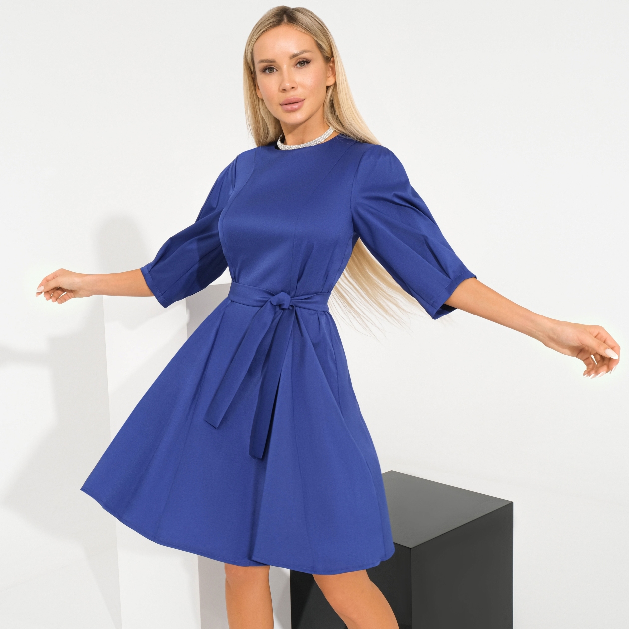 Максимально элегантный образ с акцентным поясом. Эстетика минимализма и грация haute couture. Идеально для офиса, прогулок и свиданий. Воплощенная роскошь и современность в каждом движении.