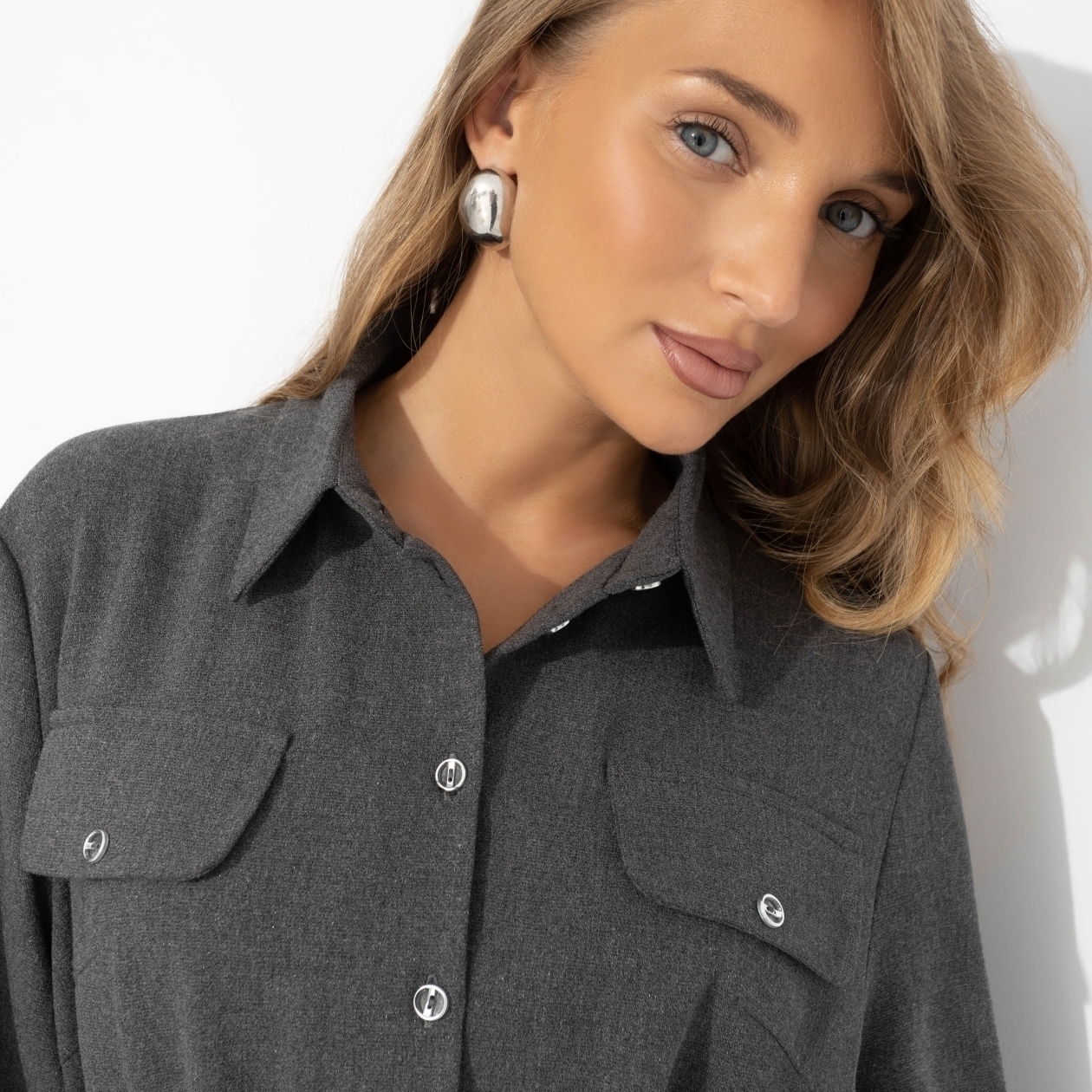 Платье-рубашка насыщенного серого оттенка от ЧАРУТТИ может стать твоим портфолио. Идеальный крой и универсальный цвет моментально приковывают взгляды и вызывают вопрос: «Где ты это взяла?». В нем ты чувствуешься настоящим архитектором стиля, чей взгляд на моду точен и безупречен. Именно после таких вещей подруги умоляют составить им шопинг-лист. Платье длиной миди. Застегивается на пуговицы. Имитация карманов. Есть пояс в тон изделия в комплекте.