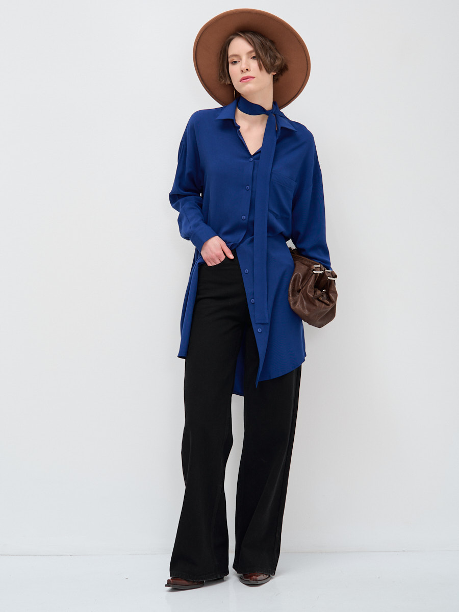 Платье-рубашка оверсайз из однотонного штапеля со спущенной линией плеча. Рукав втачной, длинный на манжете. Накладной нагрудный карман. Карманы в боковых швах. Фигурный низ изделия. Застежка на пуговицы. Съёмный пояс из основной ткани. Рост модели 175 см. Изделие на модели 42 р-ра. Длина изделия по спинке 94 см. Машинная деликатная стирка при 30 градусах.