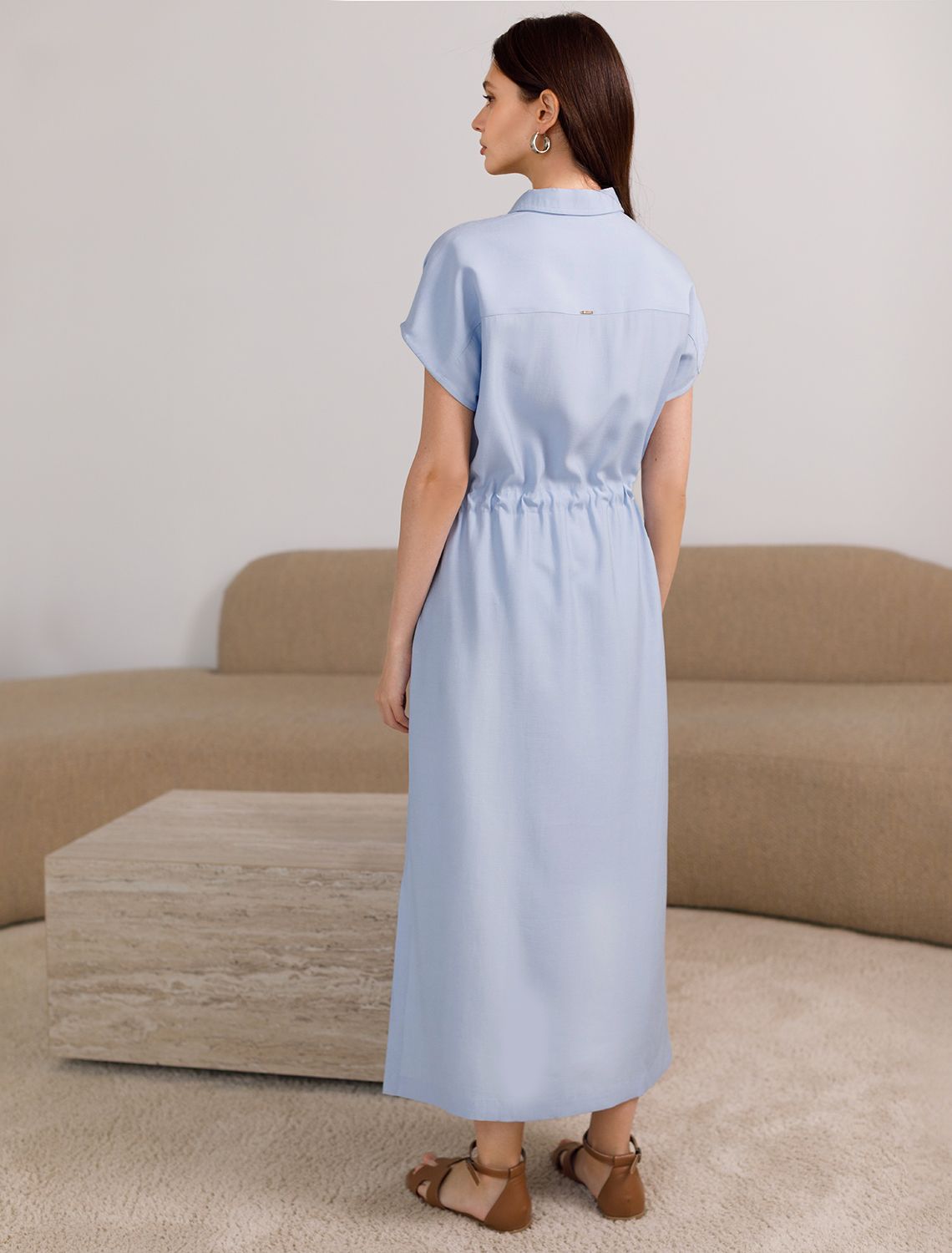 Платье-рубашка с кулиской на талии из плотного лиоцелла