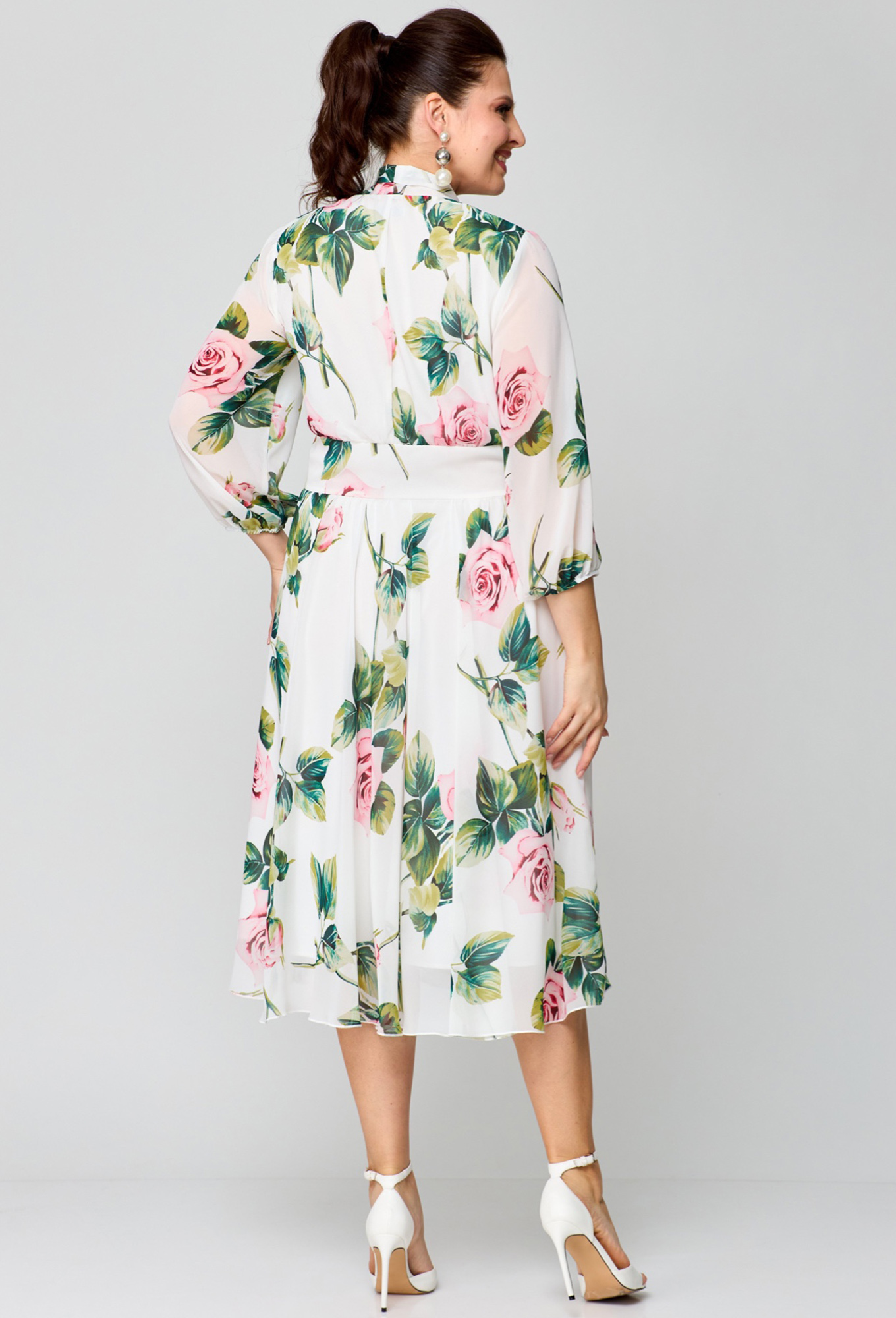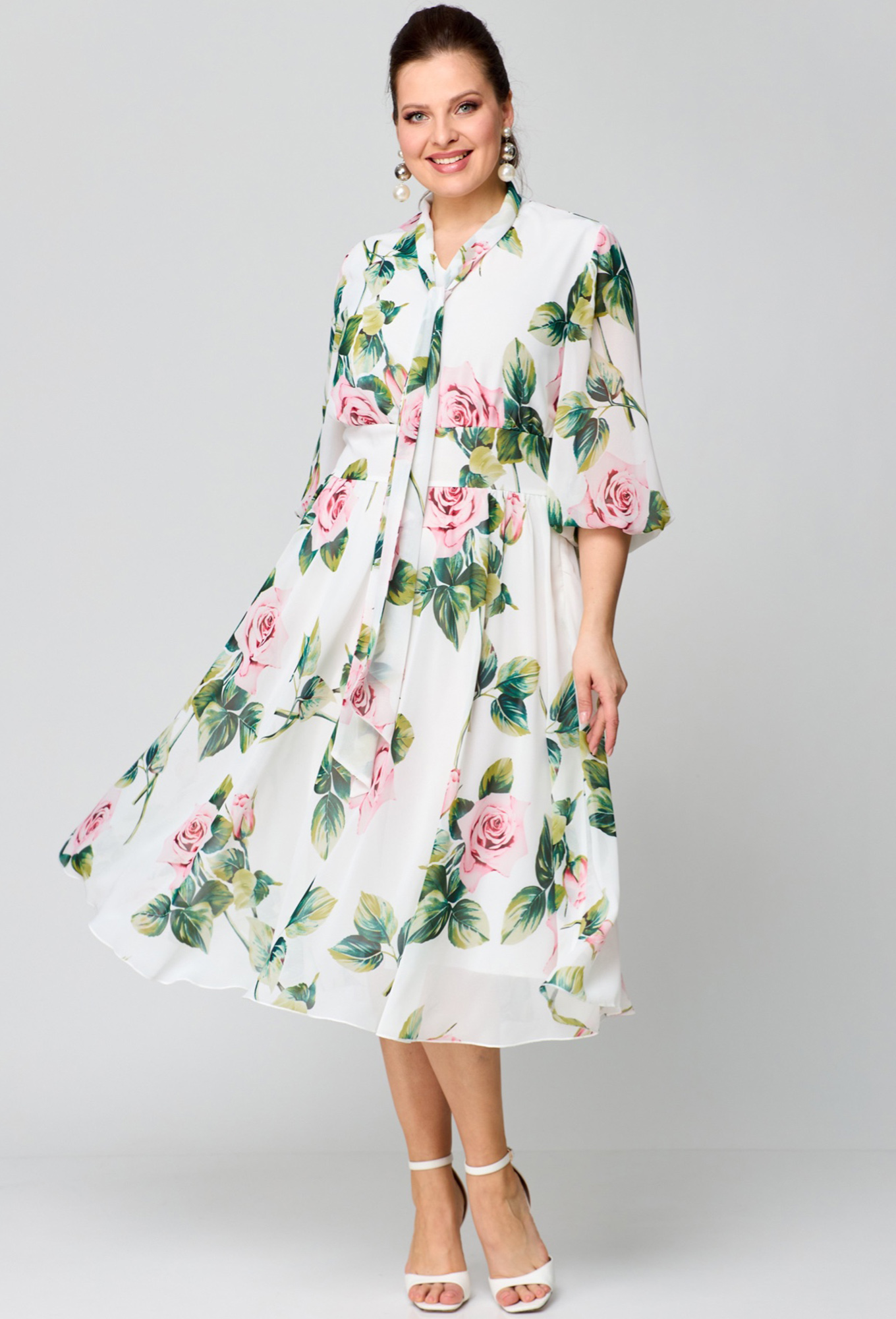 Модель: Рунелла 1626 белый цветы ..показатьРост: 164 см (девушка на фото ростом 170см) Сезон: Весна-Лето Тип ткани: ПЭ 100%Платье выполнено из шифоновой ткани на подкладе. Платье женское - праздничное - идеальный выбор для создания элегантного и стильного образа. Платье длинное с рукавами 3/4  подчеркнет вашу женственность и изящество.