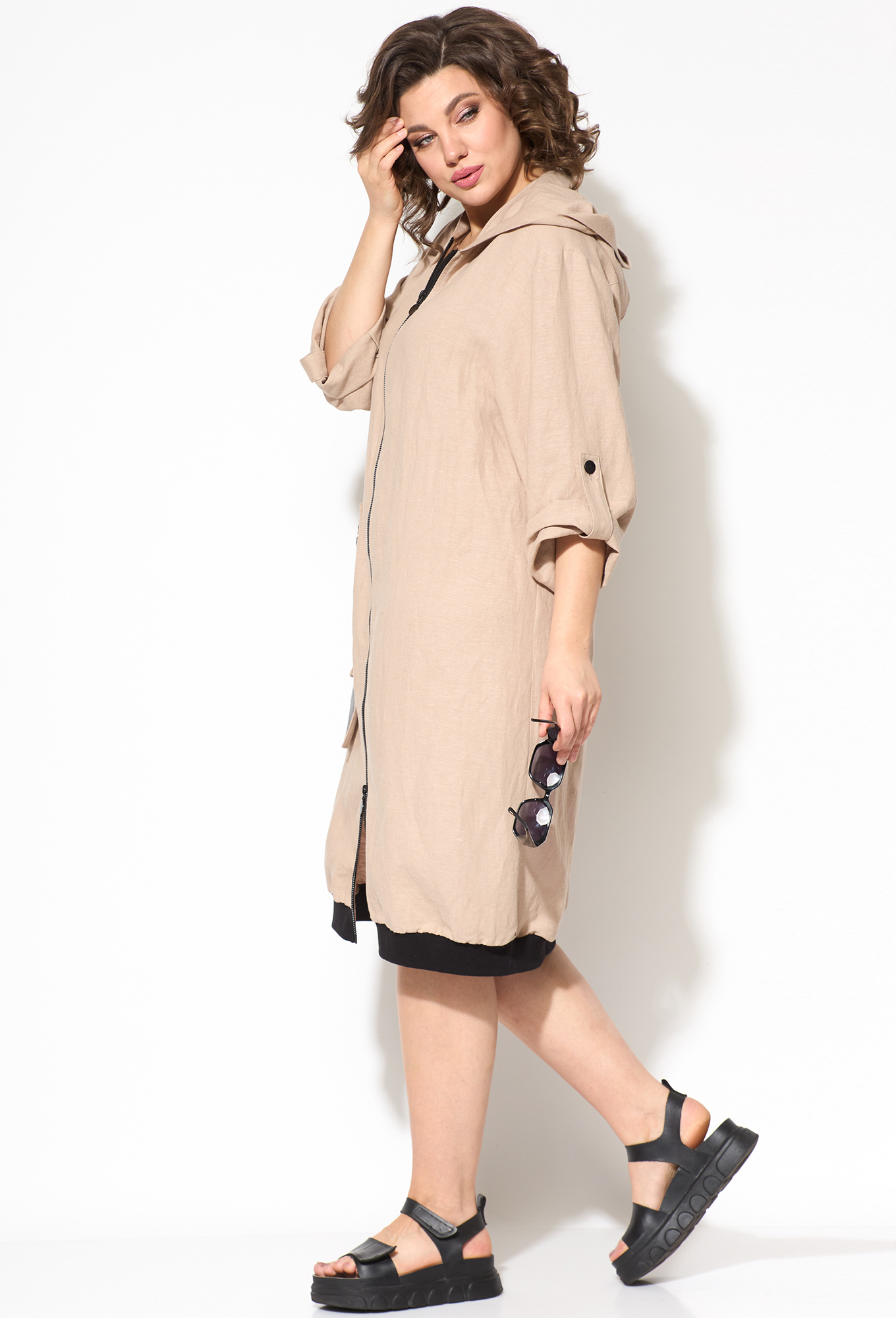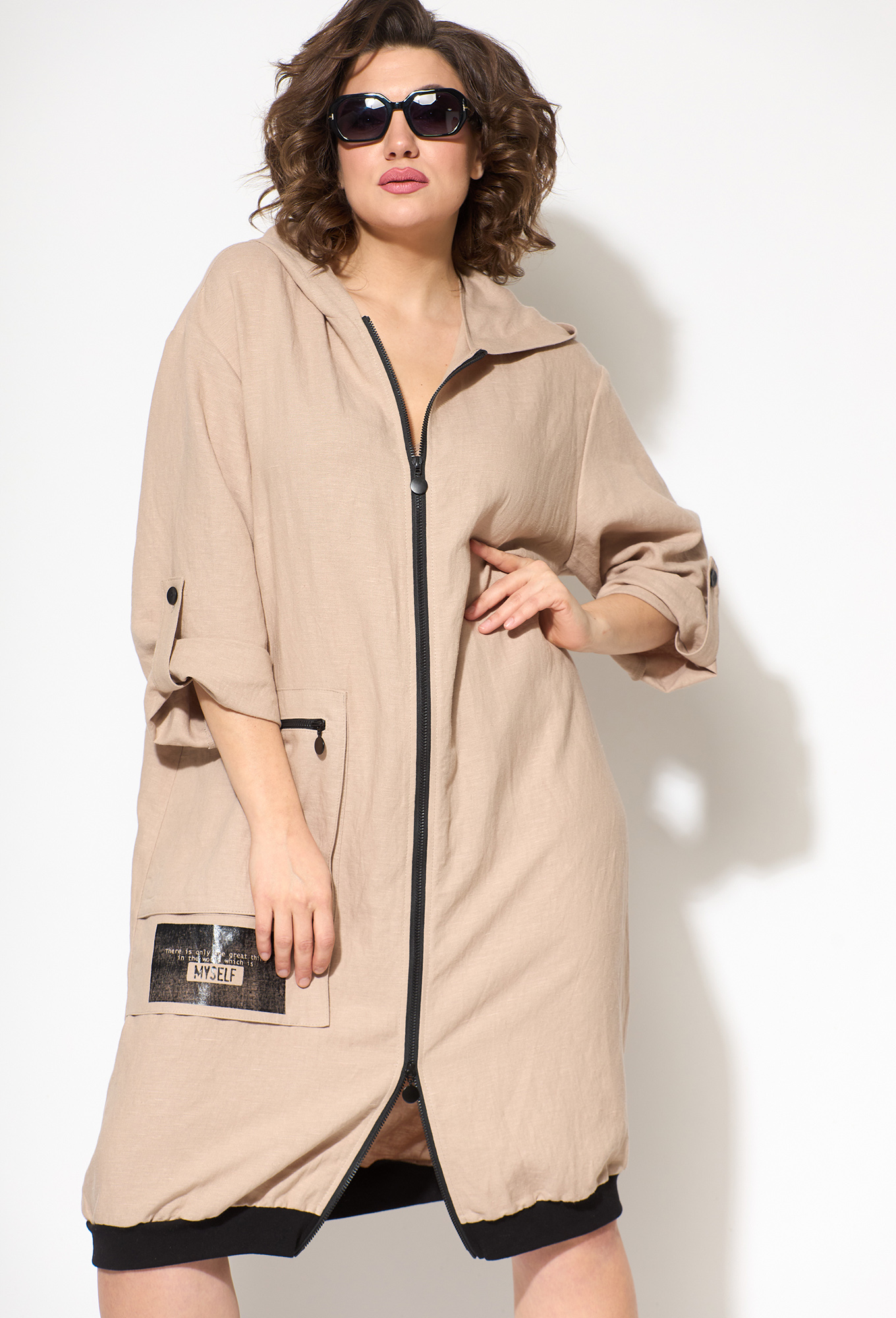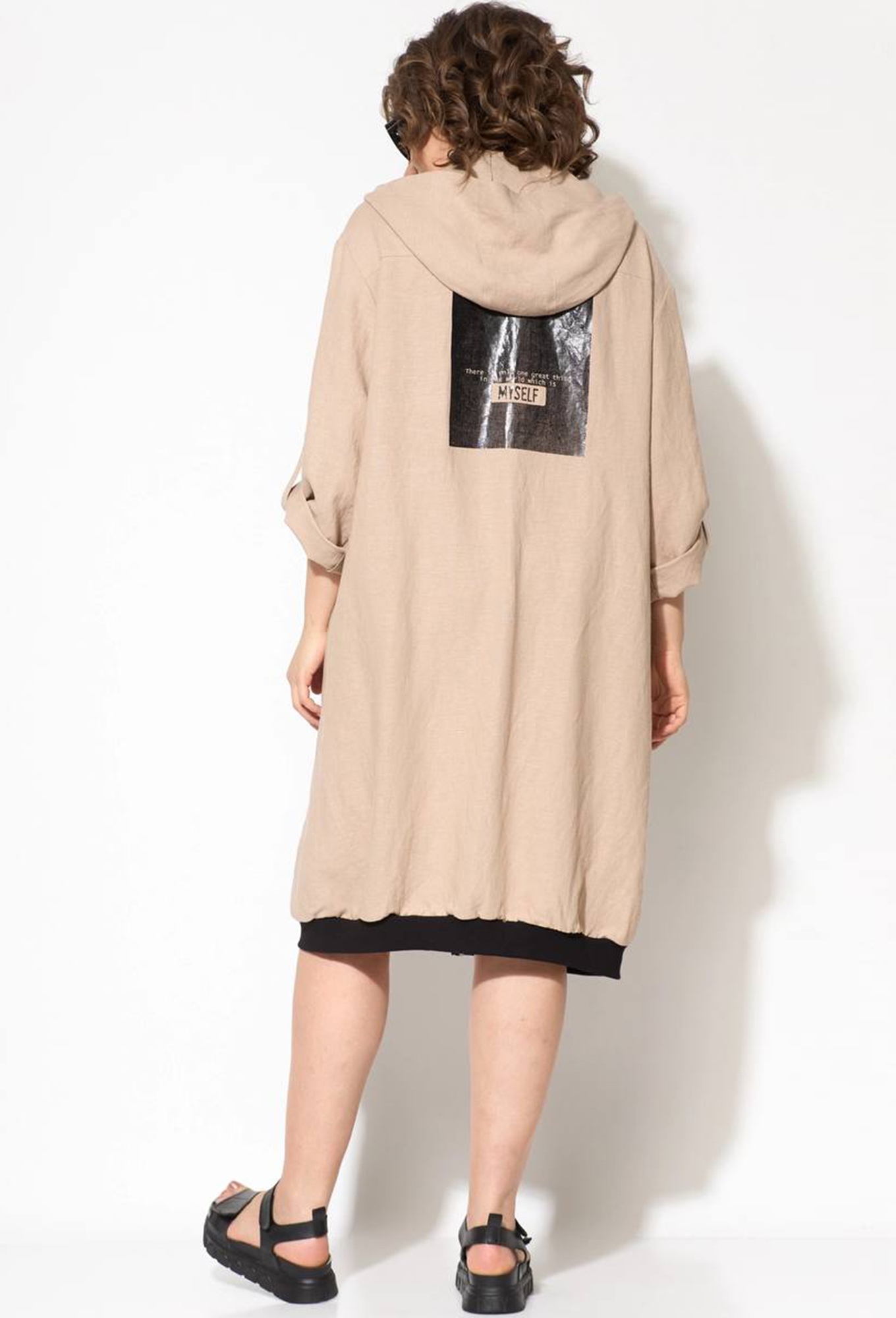 Модель: Рунелла 1629 бежевый Рост..показать: 164 см (девушка на фото ростом 170см) Сезон: Весна-Лето Тип ткани: Лен 53% , Вискоза 47%Платье прямое полуприлегающее. Застежка центральная на молнию. Есть капюшон. Плечо спущенное, рукав длинный рубашечный. По переду накладной карман с молнией. Ниже кармана отделочная деталь с термопечатью. Спинка с горизонтальной кокеткой и большой термопечатью. Низ рукава и низ изделия обработан трикотажным полотном.
