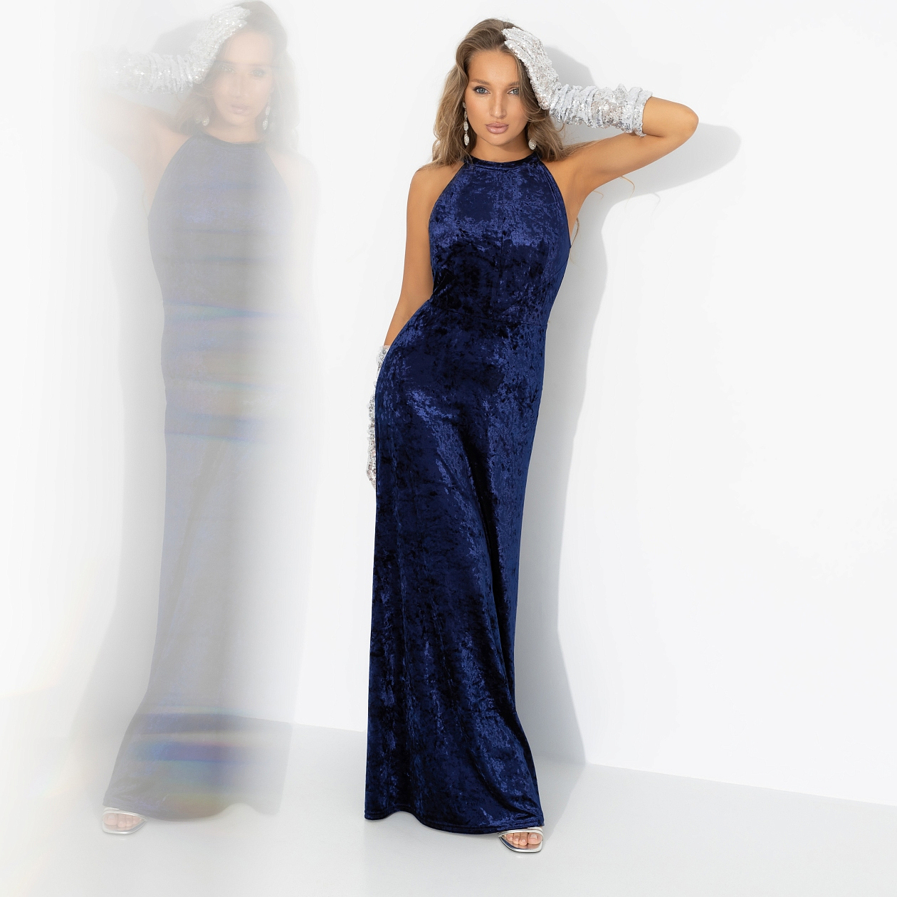 Для настоящей королевы новогодней ночи! Глубокий сапфир, благородный бархат и женственный силуэт – кажется, все желания уже осуществились. Платье макси из мягкого бархата насыщенного синего оттенка. Комфортная посадка, платье красиво драпируется, подчеркивает фигуру. Разрез на спинке – особый акцент. Уже видим фото с новогодней ночи в рамочке у твоей кровати. И понимаем: не любоваться невозможно.