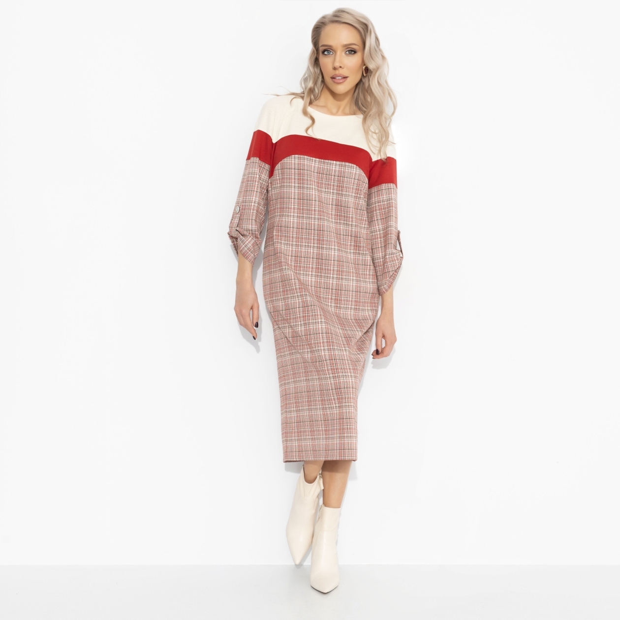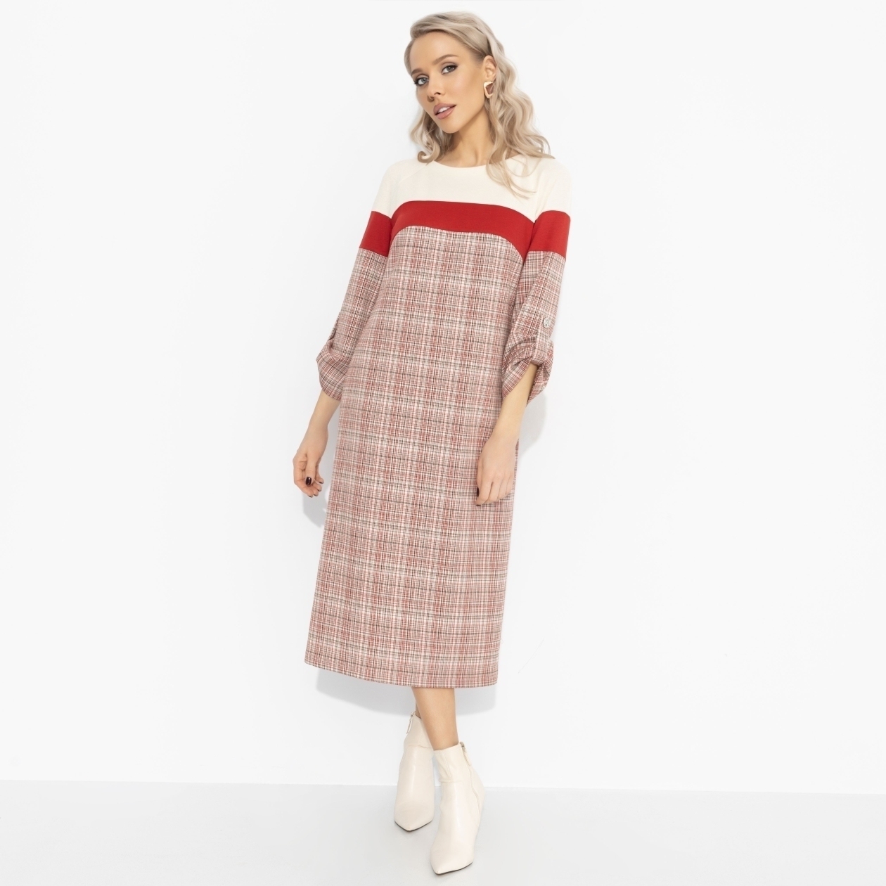Когда женщина понимает, что по‑настоящему влюблена в себя? Когда видит в зеркале уверенную, спокойную, красивую. В новом платье от ЧАРУТТИ это гарантировано. Теплые оттенки клетки, мягкий трикотаж и деликатный красный акцент в трендовом цвете Panton работают лучше любого фильтра: вы нравитесь себе здесь и сейчас. Платье миди прямого силуэта с изюминкой – акцентной спинкой с декоративными пуговицами. Рукав 3/4 с мягкой сборкой добавляет воздушности.