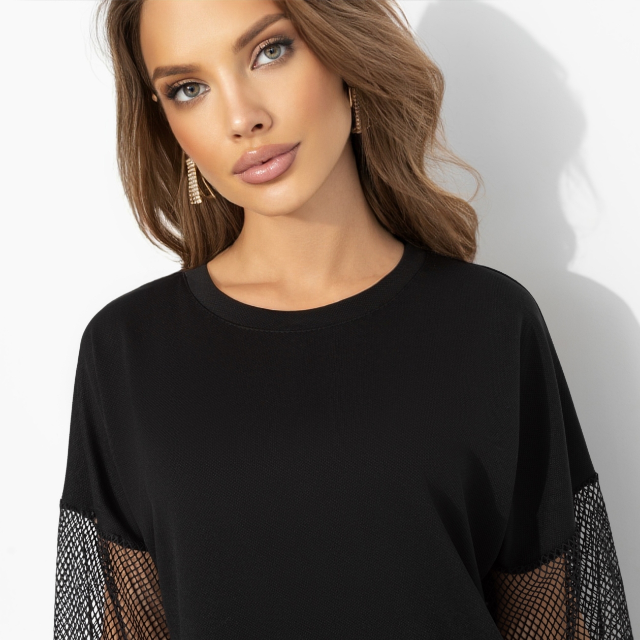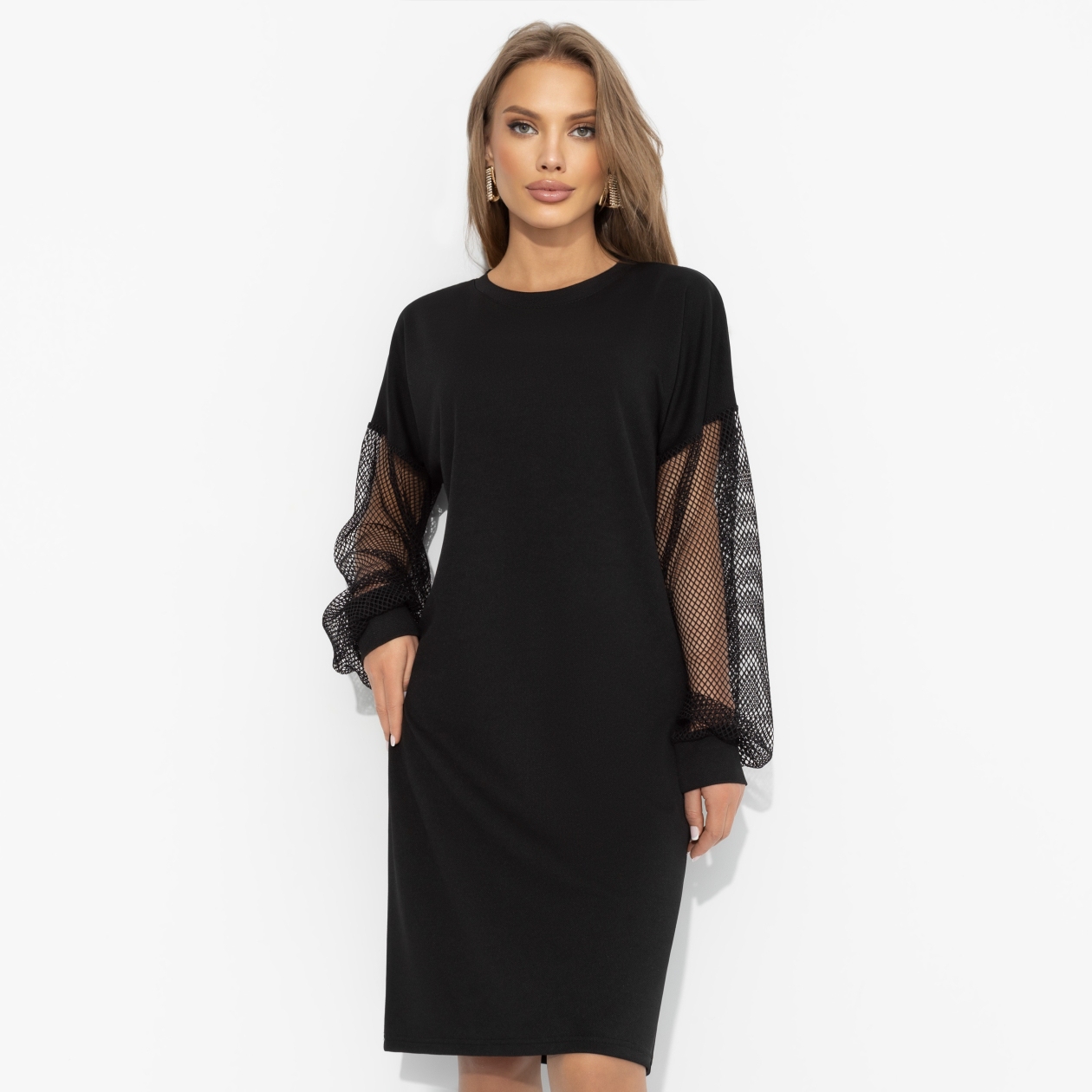 Она появляется в черном и сетке… уверенная, загадочная, дерзкая ‒ настоящая женщина-кошка. В этом платье ЧАРУТТИ можно не бояться быть хищницей, ведь каждая деталь намекает на секретную силу и соблазн. Платье из плотного трикотажа, свободные рукава из мягкой сетки для эффекта обольстительной интриги. Очень комфортное: прямой крой, универсальнаая посадка, не просвечивает. Подойдет на любой тип фигуры.