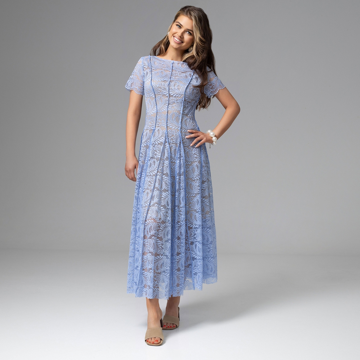 Нежный голубой – как утренний свет над морем или фарфор из винтажной коллекции. Платье ЧАРУТТИ раскрывает эту эстетику: благородный оттенок, изящное кружево и образ, который хочется рассматривать. Кружевная фактура создаёт деликатную игру света и глубину рисунка. Длина миди и плавное расширение юбки формируют вытянутый, аристократичный силуэт. И кадр получается по-настоящему изысканным. Платье имеет нижний слой-сорочку.