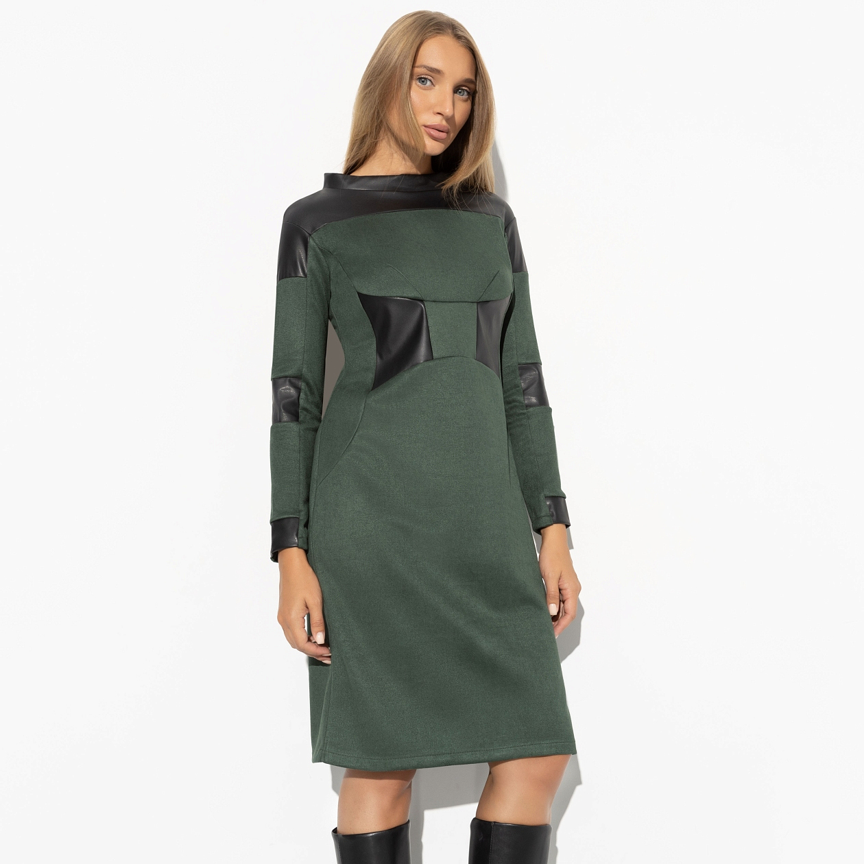 Представьте себе, как ваши клиенты облачаются в платье с экокожей «Модное величие» и чувствуют себе настоящими королевами собственного мира. Это платье связывает эстетику классической элегантности и современную дерзость. Изготовленное из трикотажа «экозамша на скубе» и украшенное деталями из «экокожи», это изделие буквально окутывает своего обладателя гладкостью и шиком. Внимание к каждому шву и изысканные текстуры делают это платье идеальным выбором для тех, кто стремится блистать на светских раутах и бизнес-встречах. Поставляя это великолепие оптом, вы дадите своим покупателям возможность ощутить себя восхитительными модниками, независимо от повода.