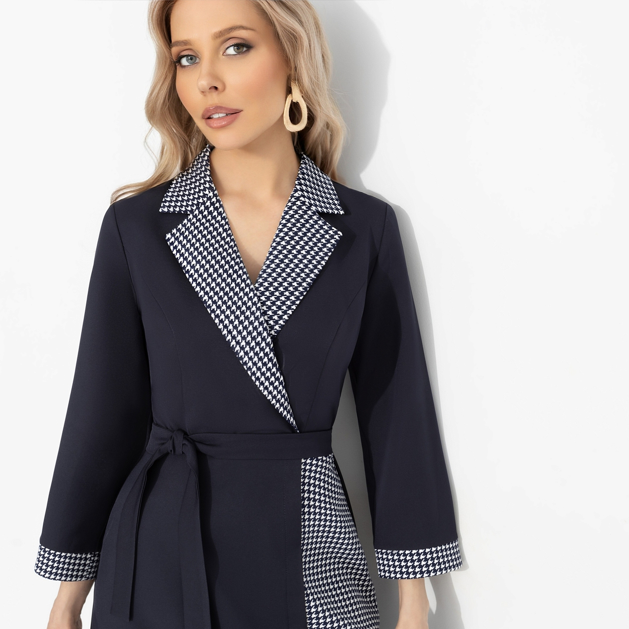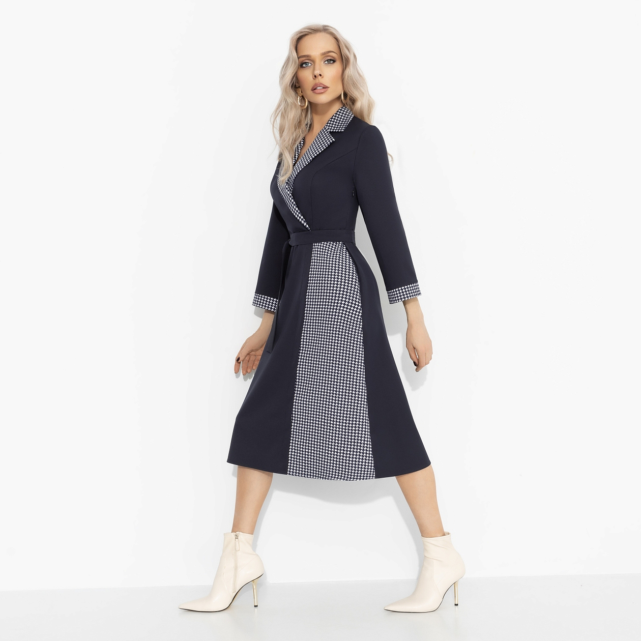 Вам выписан штраф за превышение дозы красоты! Идеальная посадка и благородная «гусиная лапка» – и каждый твой шаг тянет на превышение допустимого лимита обаяния. Пожалуй, спрведливым наказанием будет море вопросов «Откуда это платье?», на которые ты ответишь: «Из ЧАРУТТИ!». Лаконичный А-силуэт с акцентом в зоне талии. Имитация запаха. Идеально для офиса и важных встреч.