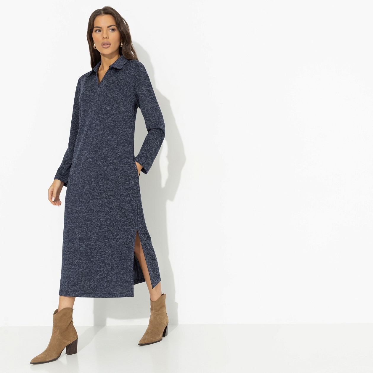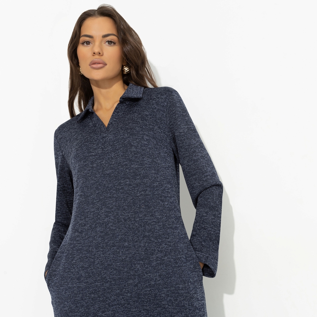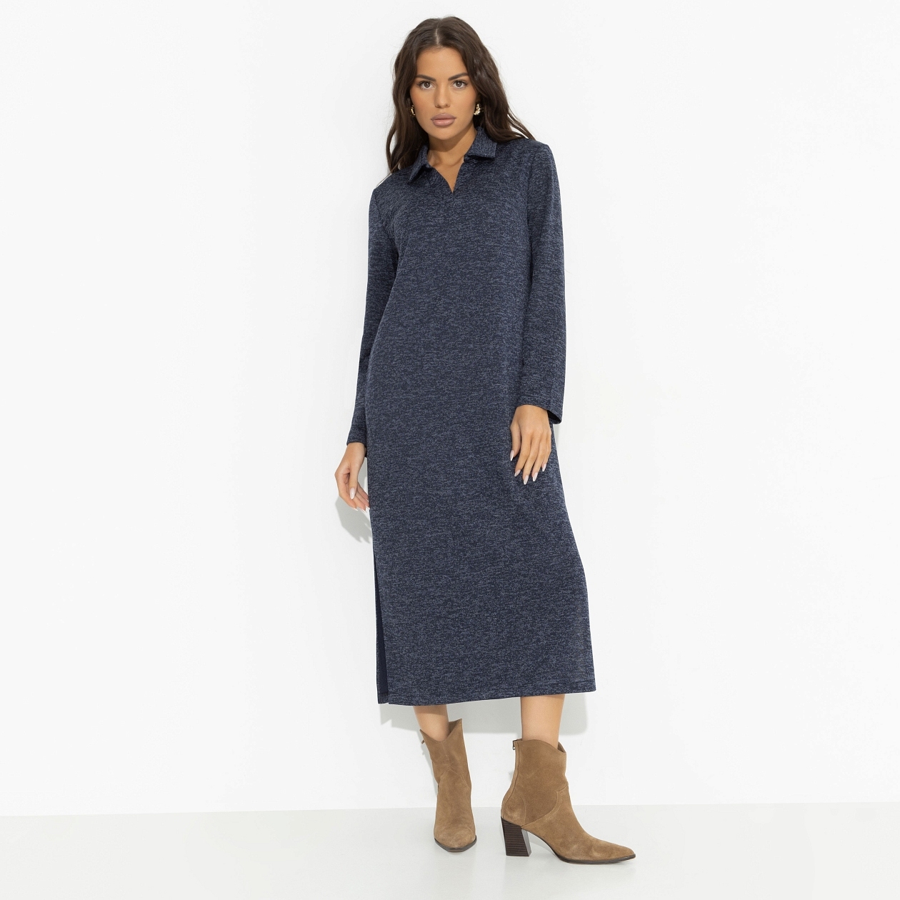 Отражение женственности и комфорта в каждом дне. Прогулка с любимым, встреча с подругой на како в кафе, продуктовый шоппинг и прием у нутрициолога. Не предавайте свою суть ни при каких обстоятельствах в платье CHARUTTI. Платье прямого силуэта в длине миди. Цвет ткани неоднородный. Воротник в стиле поло. Есть карманы. Разрезы по боковым швам. Благодаря крою изделие хорошо смотрится на любом типе фигуры.