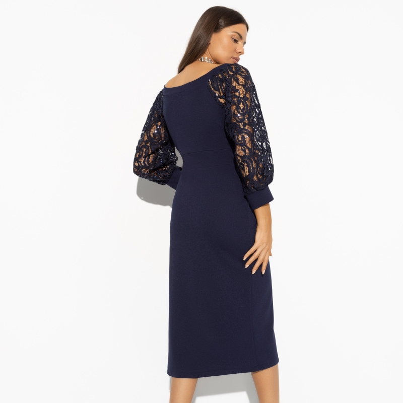 Вы почувствовали влюбленность. Да, снова. Понадобилось всего лишь посмотреть в зеркало и увидеть себя в великолепном платье от CHARUTTI. Невозможно оставаться со здоровой самооценкой, если отражение в зеркале настаивает на повышенной. Платье в длине миди приталенного силуэта. Рукава оформлены кружевом. Есть глубокий разрез. Деликатная сборка на линии талии. Линия плеч приоткрыта. Платье застегивается на скрытую молнию.