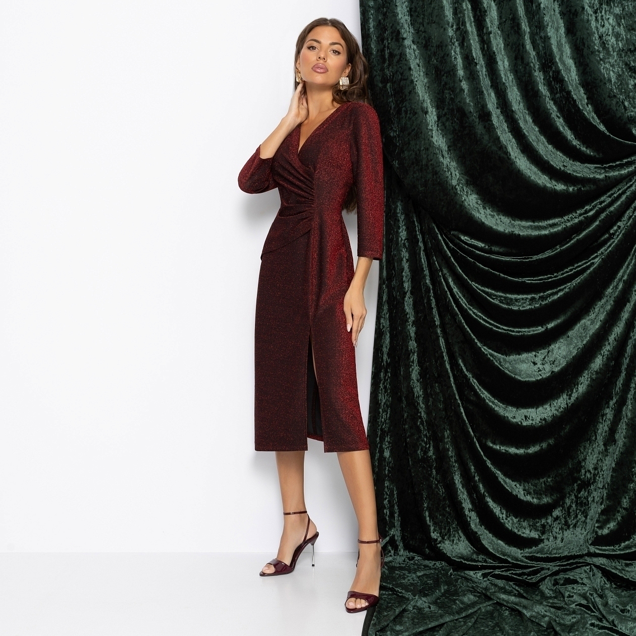 Вечер, приглушенный свет, и ты... Появляешься, как главная героиня фильма о любви, и без слов сообщаешь окружающим о своей грации и очаровании. В этом платье ЧАРУТТИ любое твое движение ‒ уже готовая сцена, полная страсти. Трикотаж с люрексом словно подсвечивает каждый изгиб ‒ мягко облегает фигуру, повторяет ваши движения и, кажется, уже флиртует вон с тем красавцем. Акцентная драпировка на талии. Высокий разрез добавляет свободу шага ‒ чтобы вы могли легко идти навстречу судьбе.