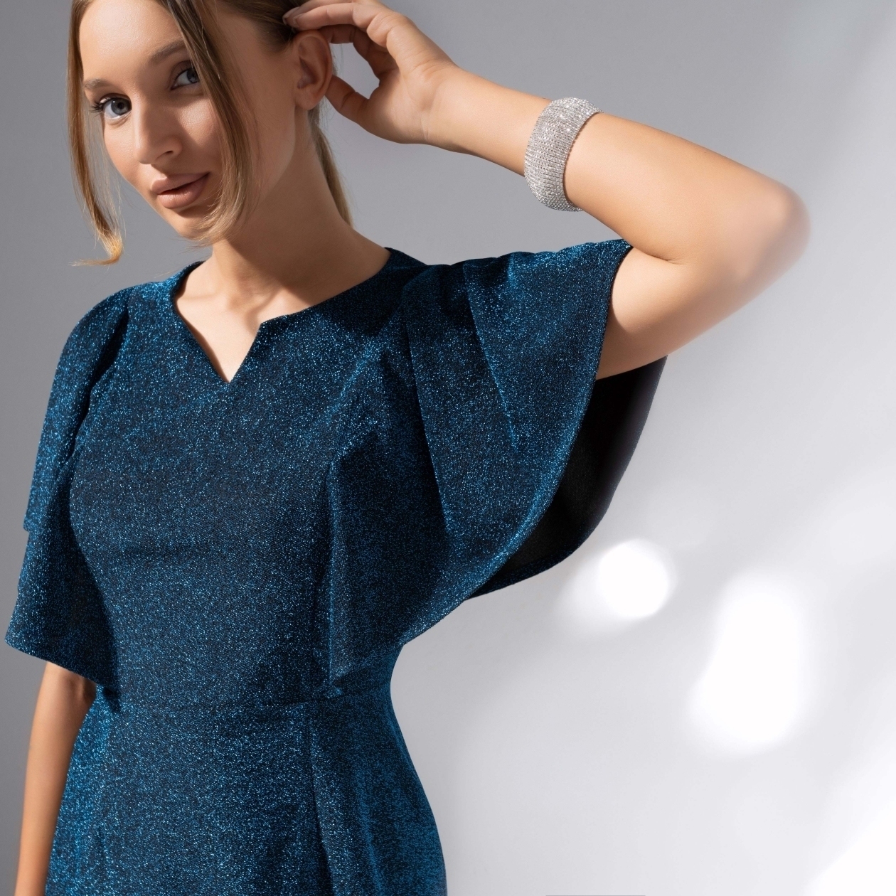 Трикотажное платье женское с люрексом — это находка для тех, кто ценит комфорт и стиль в одном флаконе. Свободные воланы на рукавах добавляют легкость и воздушность, делая его подходящим для любой фигуры. Представьте, как ваши клиенты будут наслаждаться свободой движений, оставаясь в центре внимания благодаря блеску люрекса. Это платье не только подчеркнет ваши достоинства, но и подарит уверенность в себе. Застежка на скрытую молнию обеспечивает удобство и легкость в носке. Покупая платье оптом, вы получаете возможность предложить своим клиентам великолепие и комфорт по привлекательной цене.