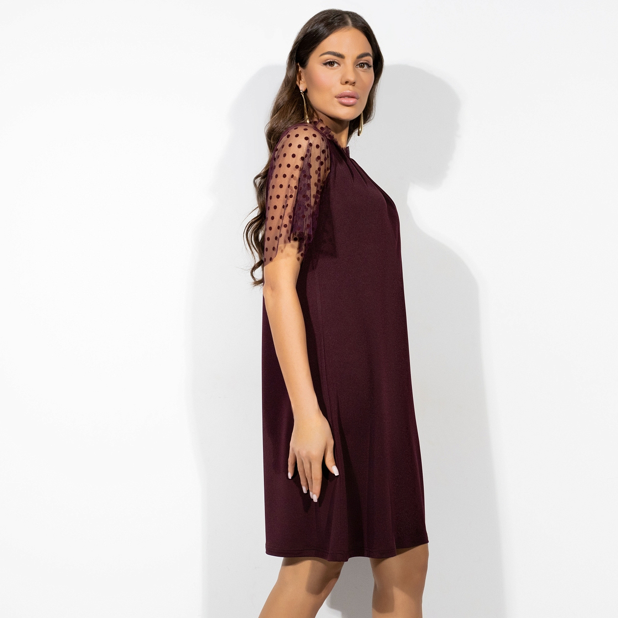 Настоящая женщина, как хорошее вино, с годами только лучше. Подтверждайте это суждение собой, выбирая платье CHARUTTI в оттенке терпкого красного вина. Платье прямого силуэта в длине до колена. Акцентные прозрачные рукава. Декоративная сборка в зоне груди. Есть завязки по задней части изделия.