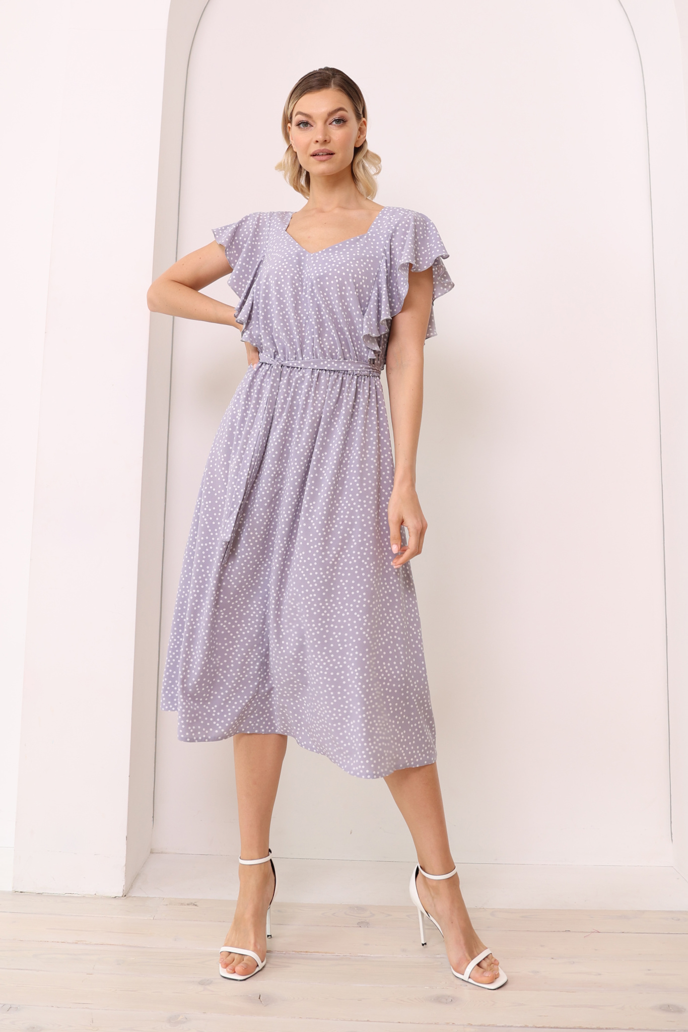 Платье-миди с рукавом-воланом. Фигурный вырез декольте. Резинка по линии талии. Пояс в комплекте. Ткань: стрейч "Салма"