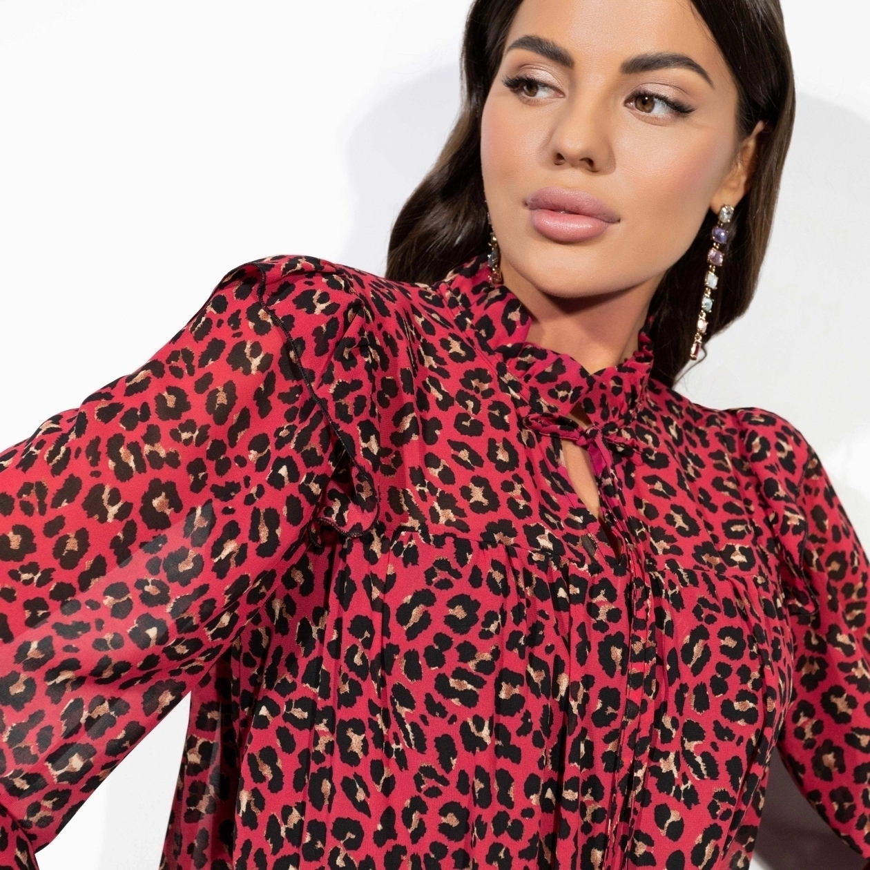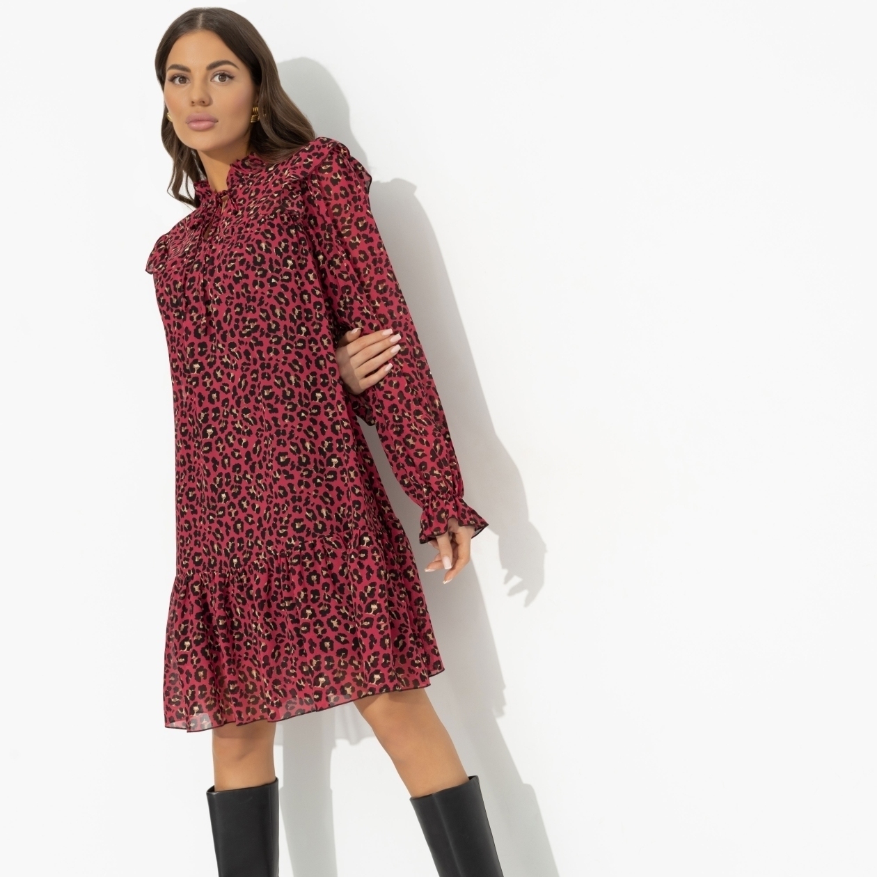 Предлагаем отпустить предрассудки, чтобы жить ярче! Даже леопард может позволить себе сменить окрас, если речь идет о платье CHARUTTI. Игривая розовая расцветка создана для девушек с внутренней свободой. Платье прямого силуэта в длине до колена. Изделие подойдет любому типу фигуры. Деликатные рюши в качестве декора. Есть тонкие завязки в зоне ворота.