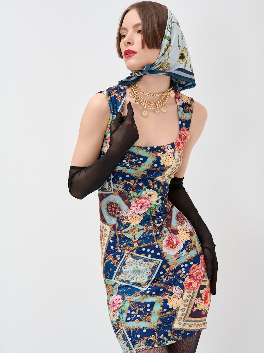 Платье из трикотажа «масло» прилегающего силуэта. На широких бретелях. Вырез горловины «каре». Ткань легкая, мягкая, хорошо тянется и очень приятная к телу. Рост модели 175 см. Изделие на модели 42р-ра. Длина изделия по спинке 95 см Машинная стирка при 30