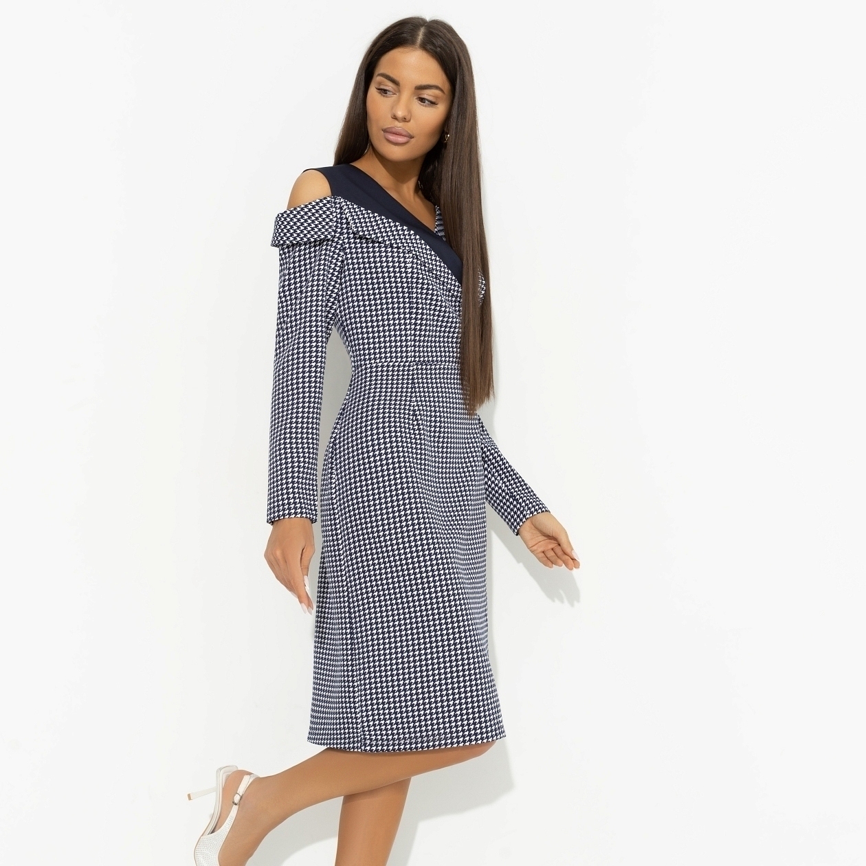 Леди Ди была fashion-инфлюенсером своего времени. Её платья покоряли не только страницы модных журналов, но и сердца людей. Платье CHARUTTI в стиле принцессы в современном прочтении. Платье приталенного силуэта в длине миди. Асимметричный крой верхней части платья с имитацией многослойности. Вырез на одном плече. Запах юбки изделия формирует глубокий вырез.
