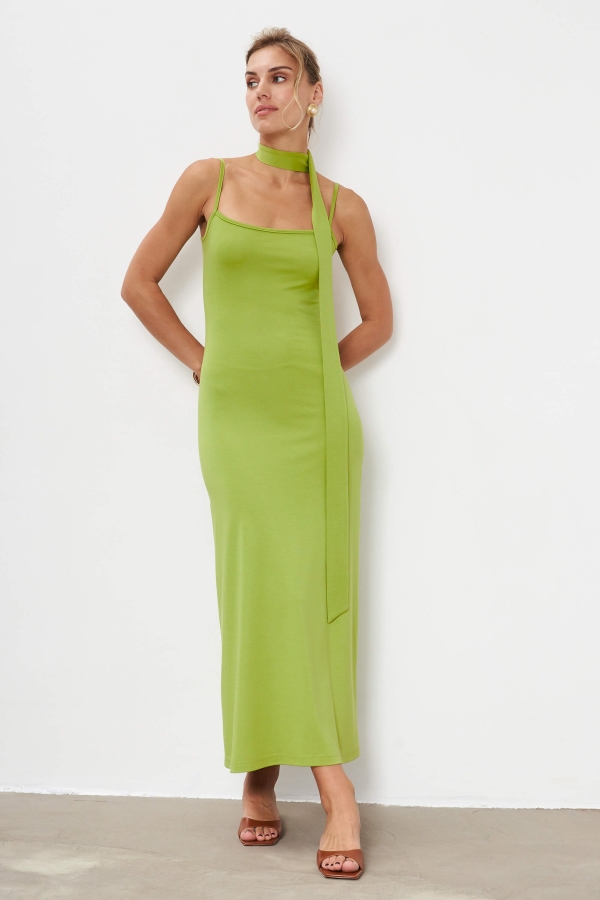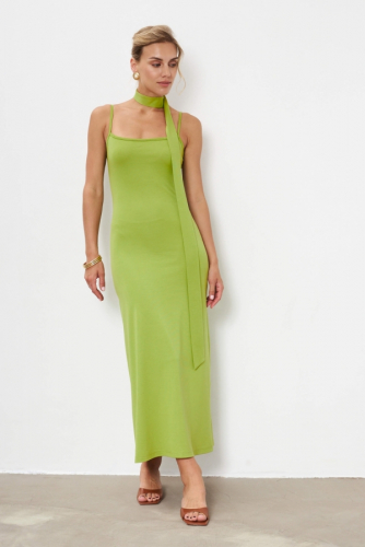 Трендовое платье из комфортного вискозного трикотажа. Модель облегающего силуэта с открытыми плечами. В комплекте функциональный пояс-шарф из основной ткани.