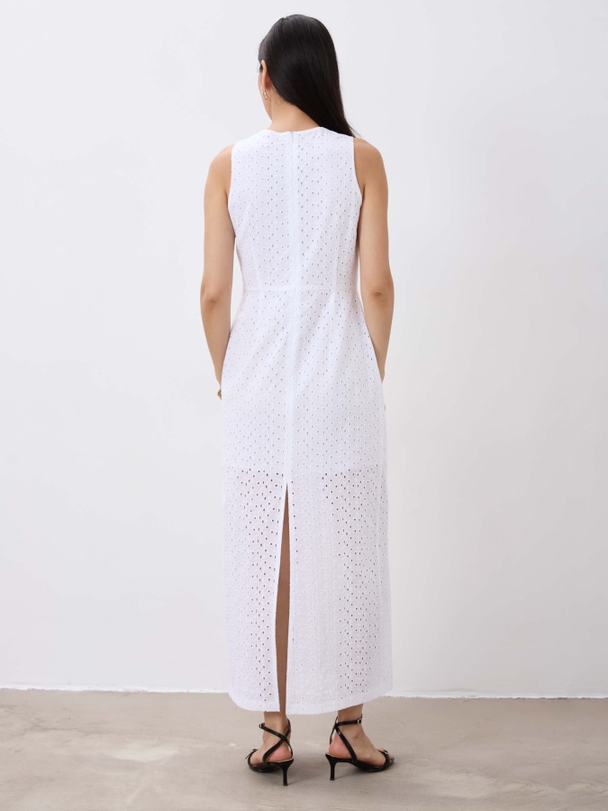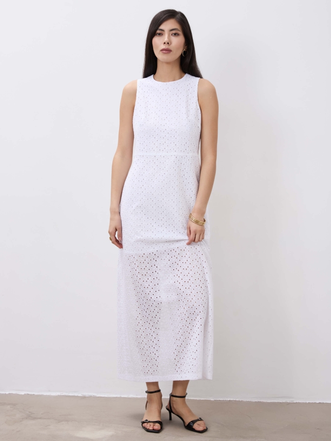 Женственное трендовое платье из хлопкового шитья на подкладке из батиста. Полуприлегающее прямое платье с круглой горловиной, отрезное по талии, с застежкой на спинке на петлю и пуговицу, в комплекте пояс из основной ткани.