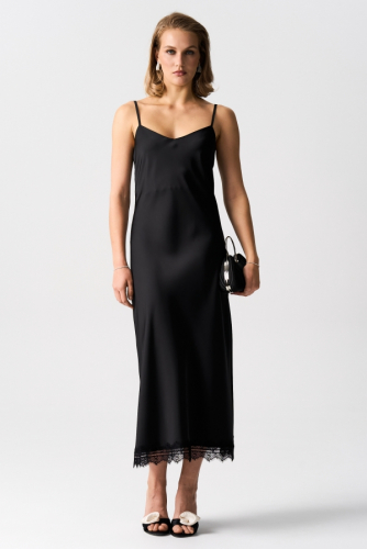 Платье в бельевом стиле длины миди. Модель полуприлегающего силуэта. выкроенная по косой. Бретели на регуляторах.