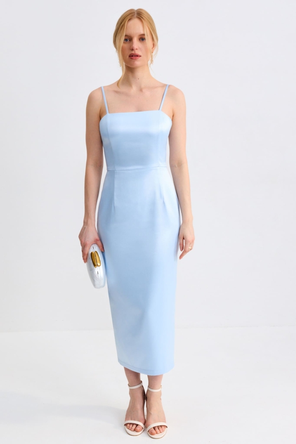 Платье футляр в длине миди с шарфом кейпом. Модель полуприлегающего силуэта, отрезная по линии талии. Бретели регулируемые. По спинке разрез и застежка на потайную молнию. Изделие на подкладе. Шарф-кейп с застежкой на воздушную петлю и пуговицу.