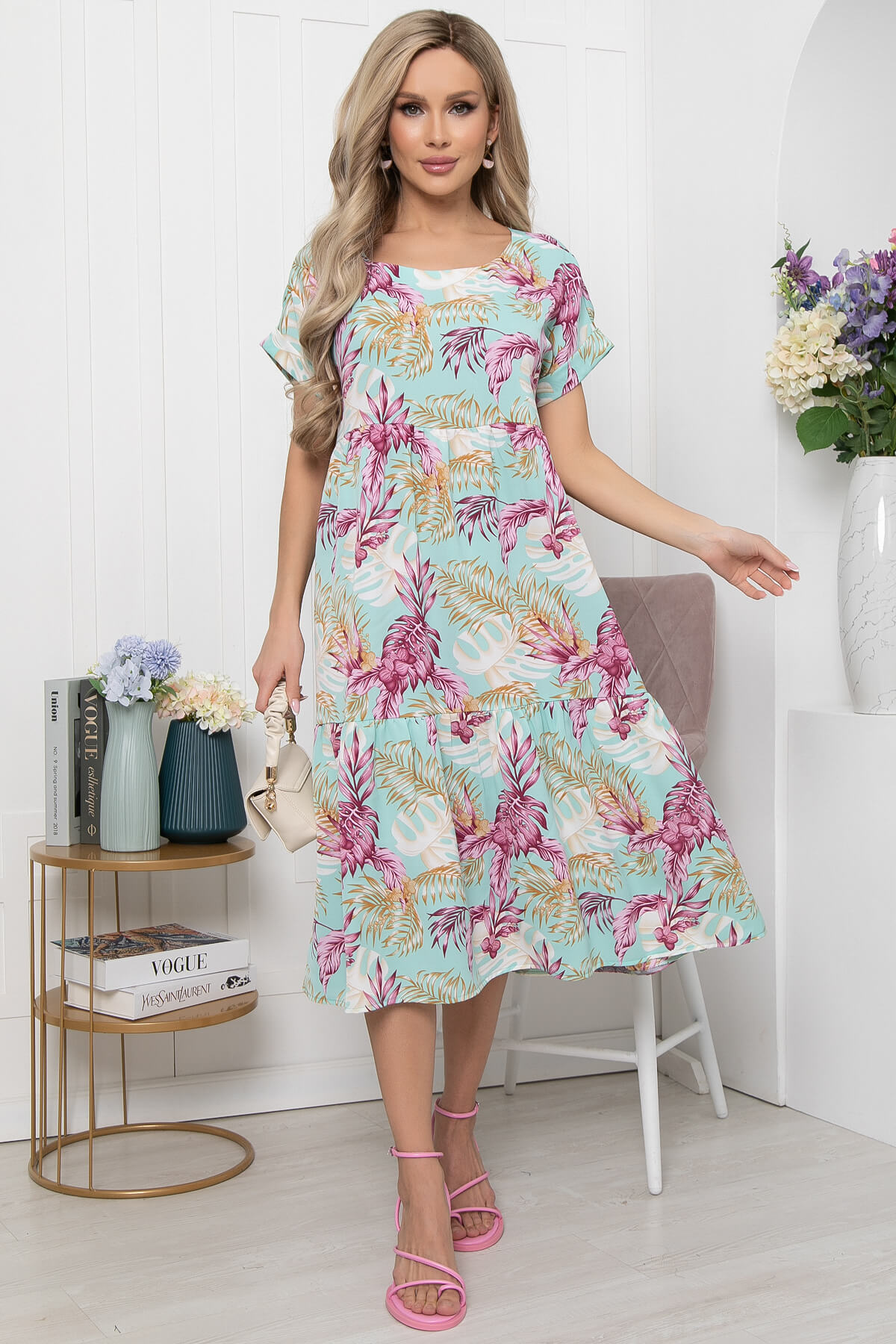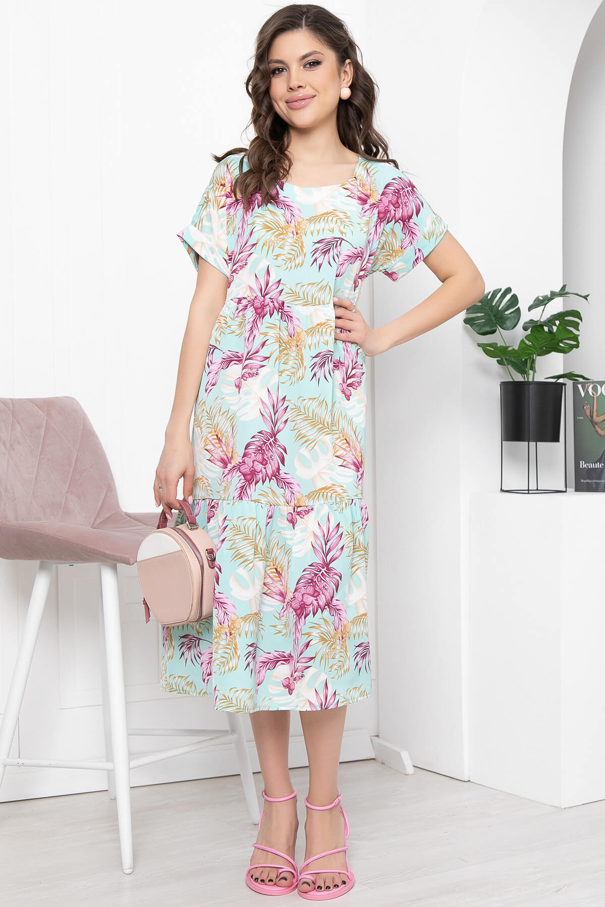 Платье с воланом - символ женственности, изящества и романтичности. Такое платье отлично подойдет на каждый день. Свободный крой позволит скорректировать фигуру, скрыть недостатки. Рукав укороченный, втачной, дополнен манжетой.