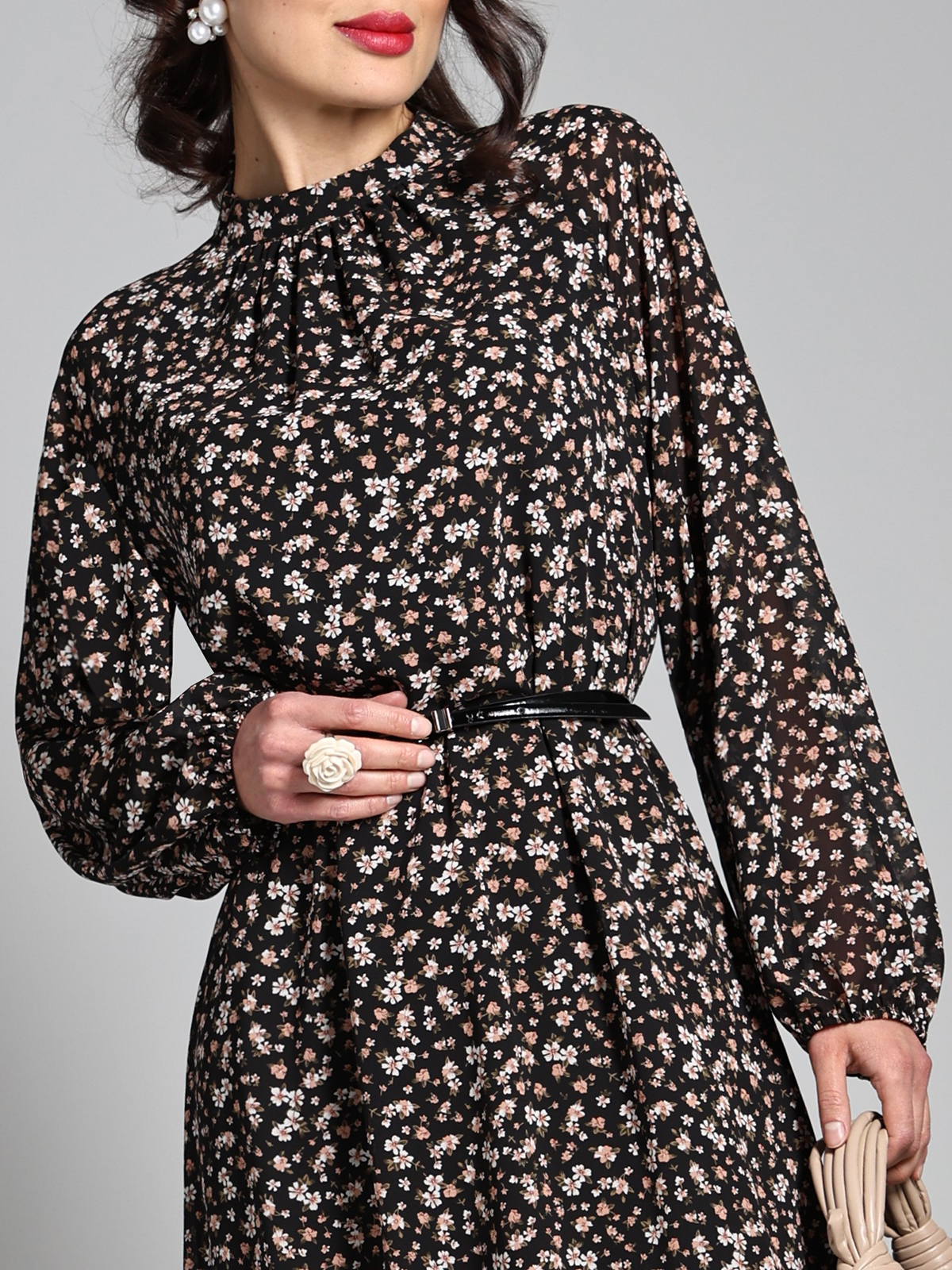 Платье шифоновое с длинным рукавом