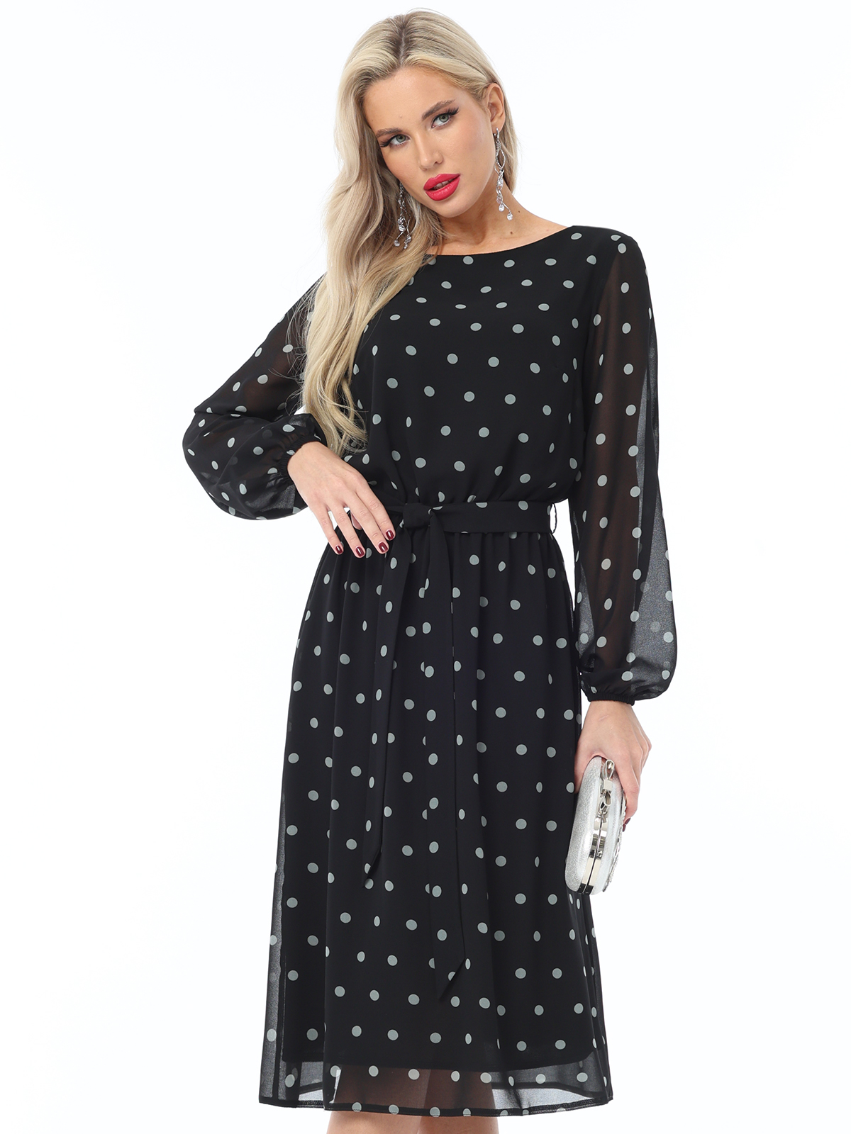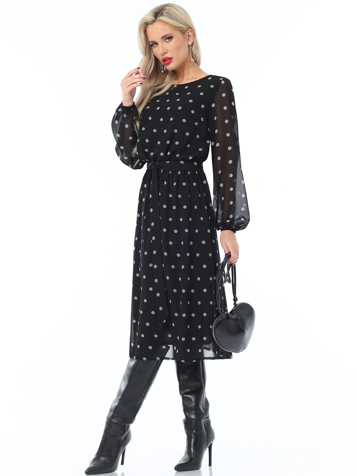 Утонченное платье с поясом — универсальная находка, которая поможет выглядеть женственно и стильно в любой ситуации. Полуприлегающий фасон с резинкой по талии красиво подчеркивает фигуру и визуально создает заветный силуэт «песочные часы». Длинные воздушные рукава придают образу легкости, а вырез-лодочка акцентирует внимание на изящных ключицах. Тонкий пояс в тон элегантно завершает образ, однако его всегда можно заменить на более заметный ремень, чтобы добавить наряду стильную изюминку. Платье выполнено из легкого, приятного к телу материала, который не просвечивает и эффектно струится в движении. Благодаря лаконичной расцветке и универсальному фасону модель подойдет как для дневных, так и для вечерних выходов. Чтобы платье не деформировалось, рекомендуется стирать его в деликатном режиме при температуре до 30 градусов, не отжимать и не выкручивать.