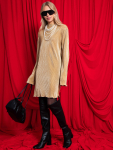 Платье мини со сборкой прилегающего силуэта. Модель имеет длинный втачной рукав. Модель выполнена из приятного к телу эластичного трикотажа и дополнена оригинальной мелкой сборкой в боковых швах, образующей эффектные драпировки.