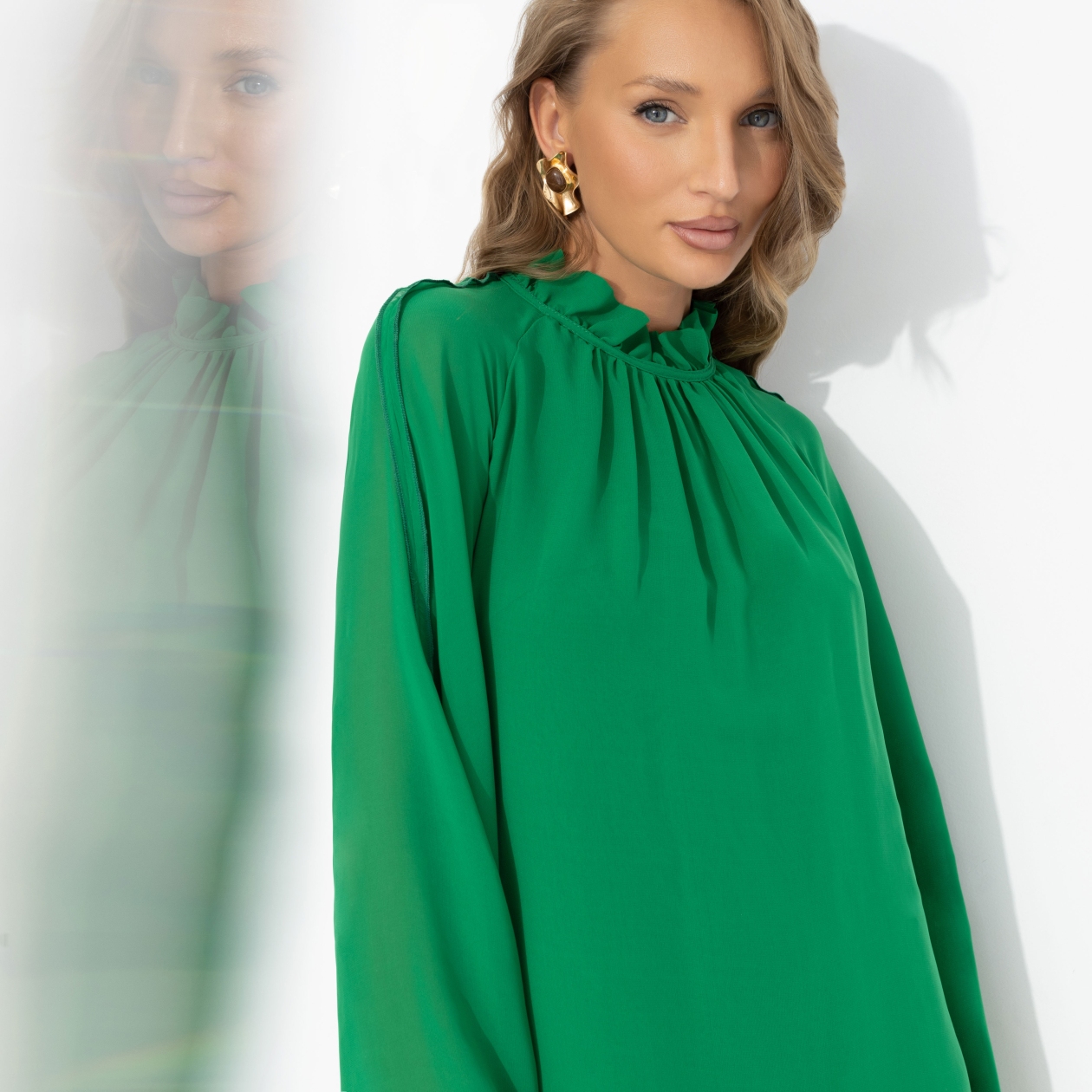 Платье со свободными рукавами, Стильная эйфория (зелёное)
