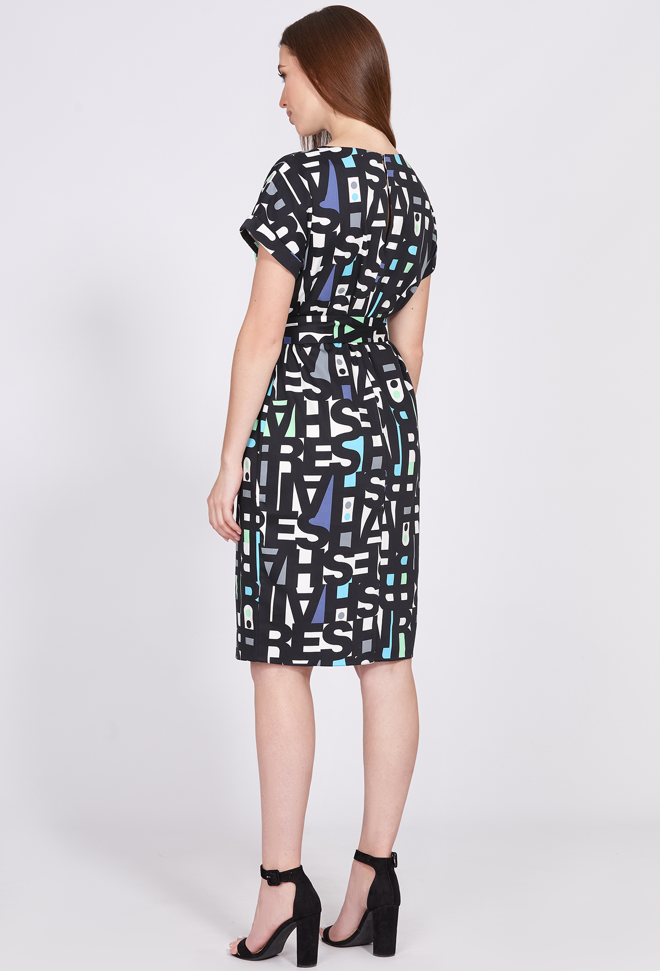 Модель: Солеи 3730 черный буквы Р..показатьост: 170 см (девушка на фото ростом 170см) Сезон: Весна-Лето Тип ткани: 100% ХлопокПлатье прямого силуэта из полотна со стильным принтом , спущенной линией плеча с цельнокроеными рукавами и манжетами- отворотами._x000D_